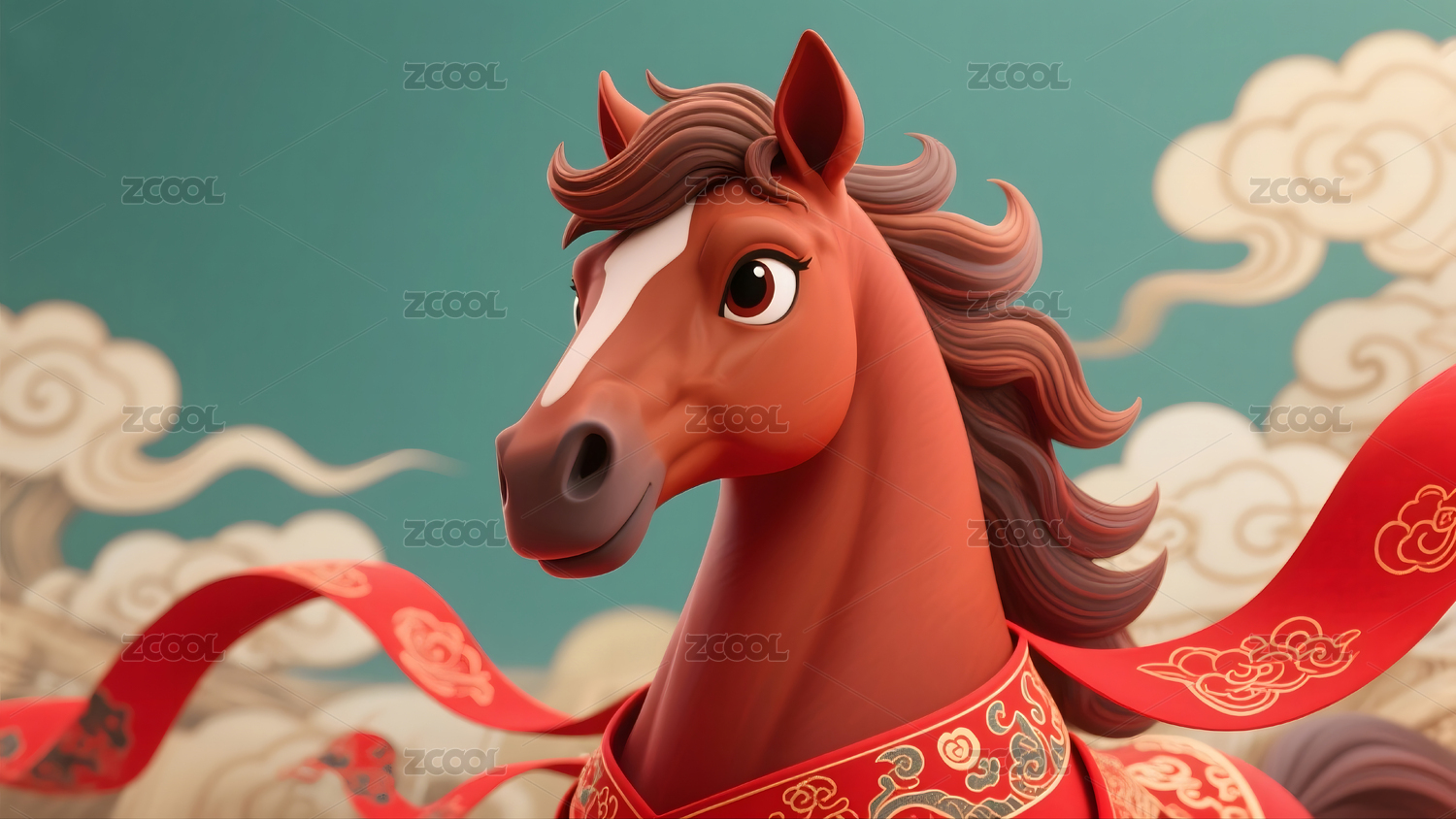 三维,人物,春节,马年,小马,马,生肖,背景,奔跑,祥云