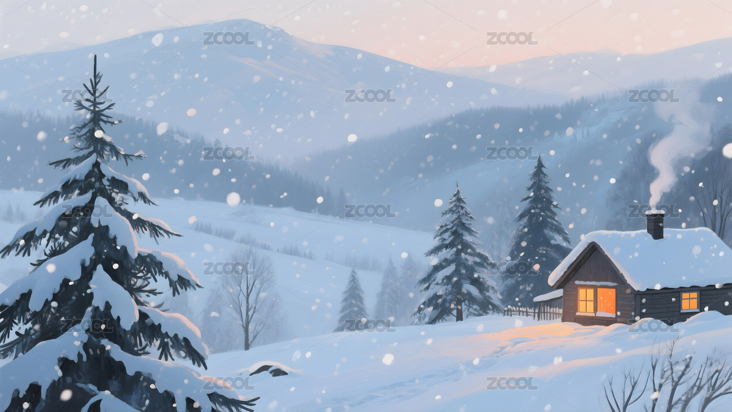 冬天,冬季,立冬,雪景,小屋,下雪,大雪,小雪,大寒,小寒