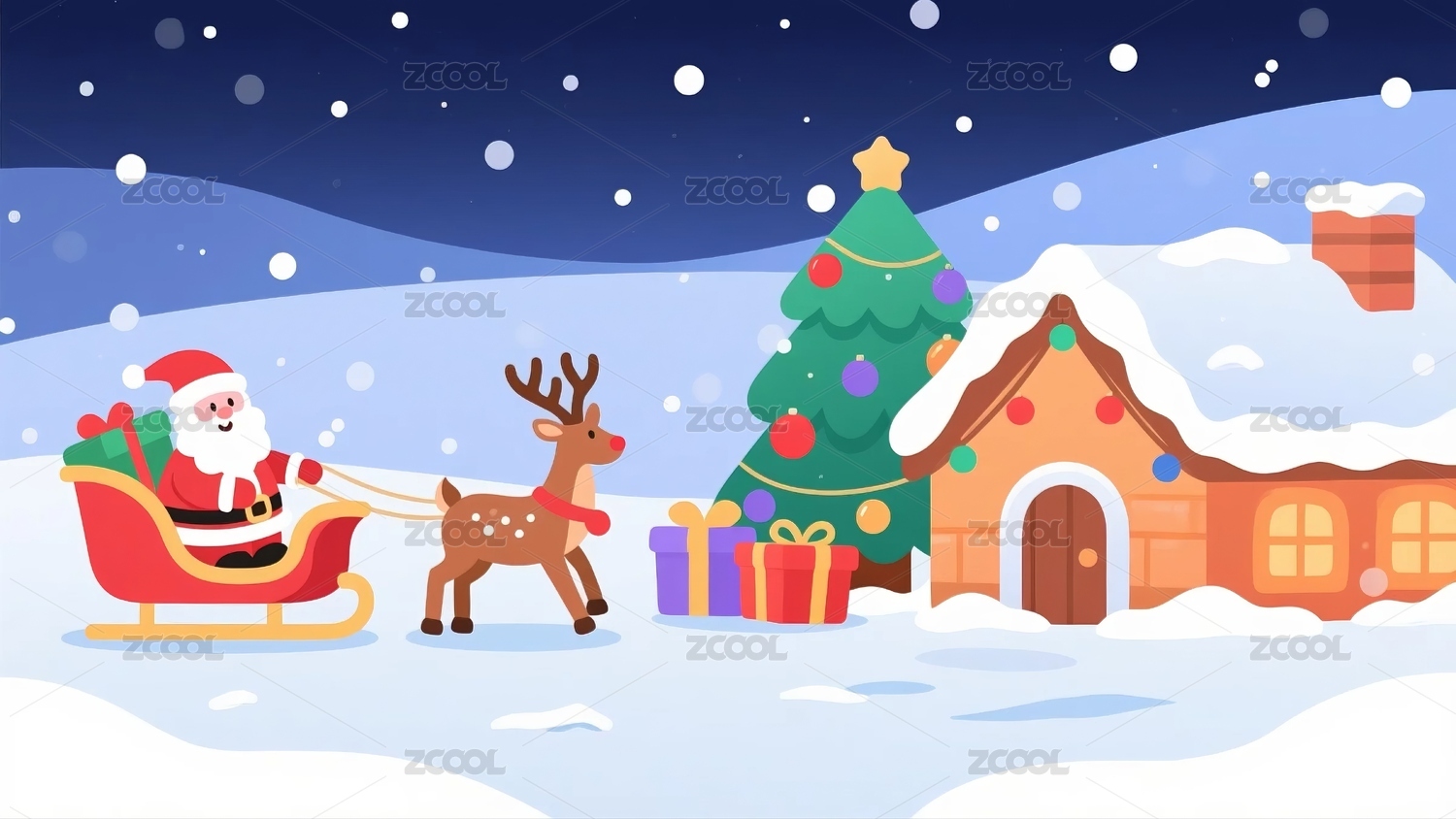 圣诞老人圣诞节送礼物插画冬天大雪户外海报