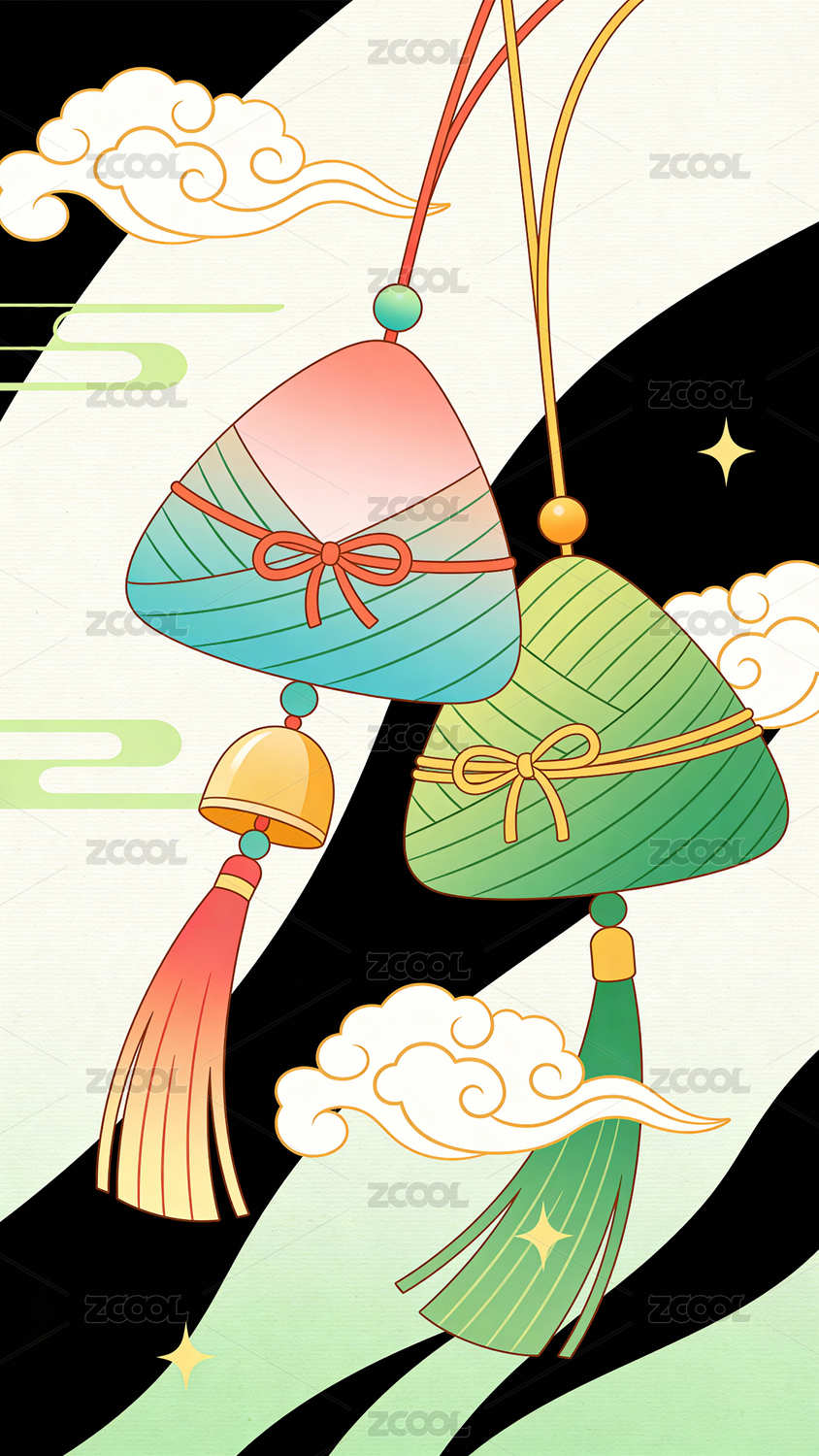 国潮端午节粽子香囊插画