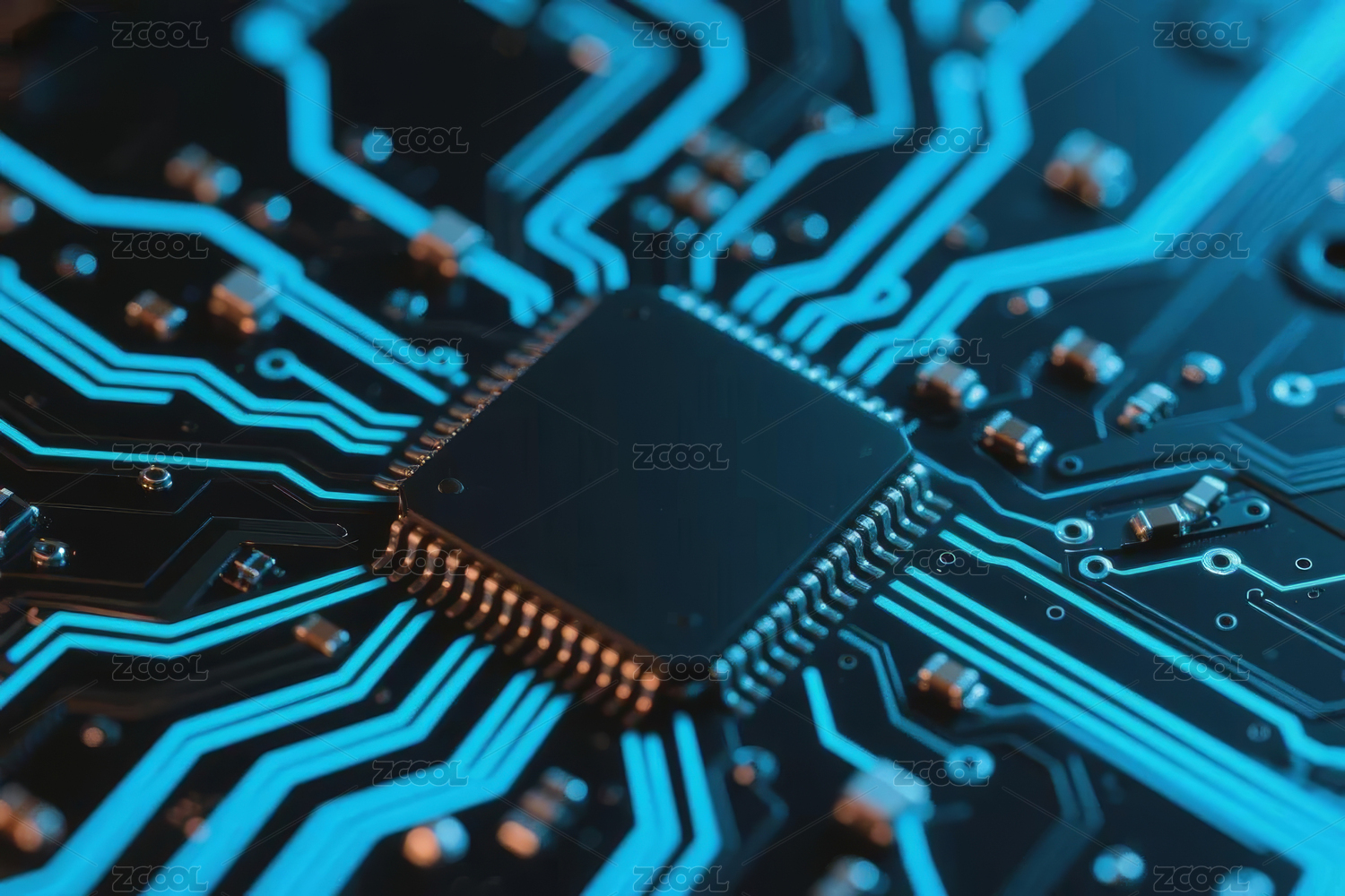 黑色芯片蓝紫电路