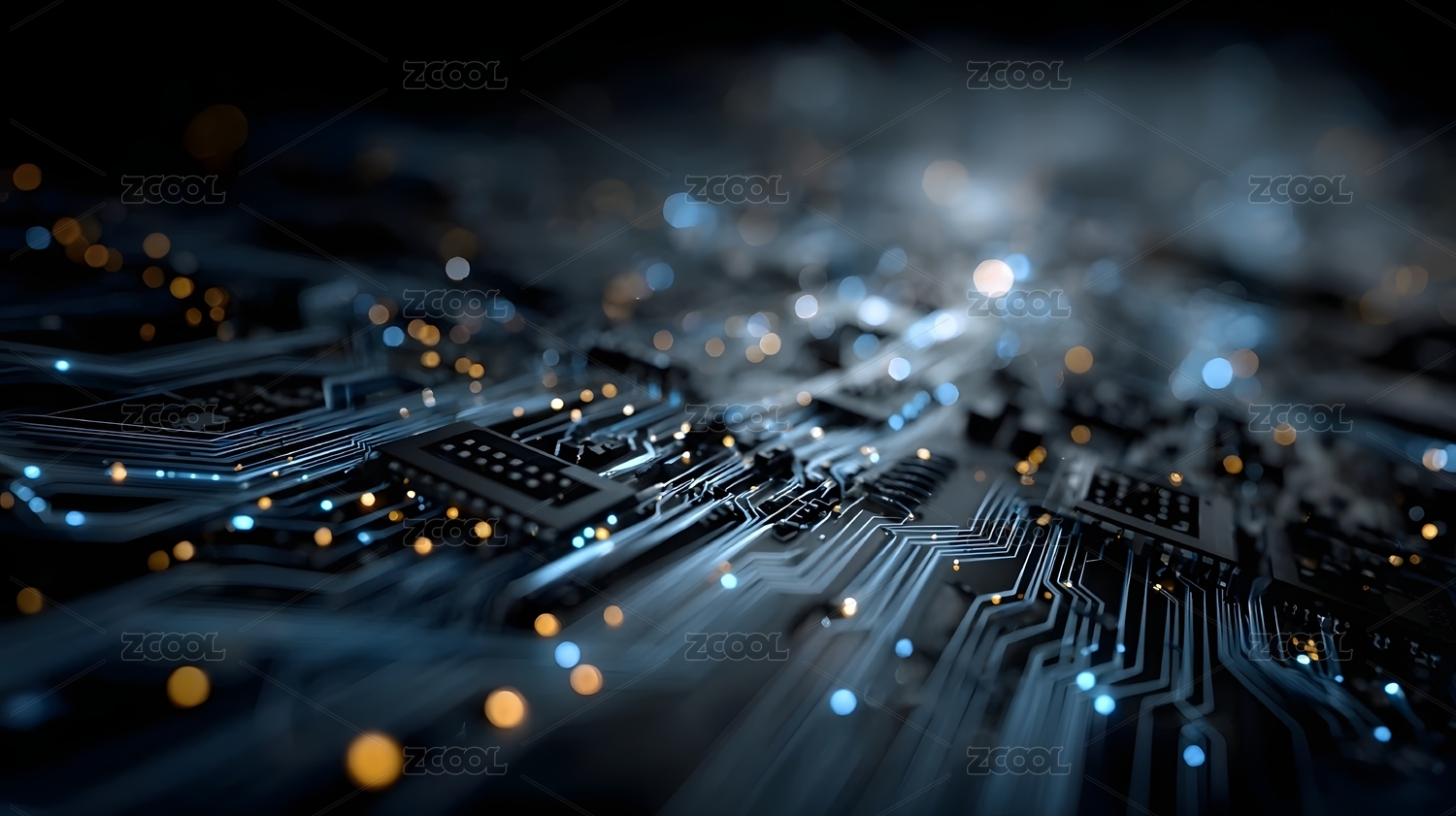 发光芯片电路在橙蓝交织光效中呈现科技感画