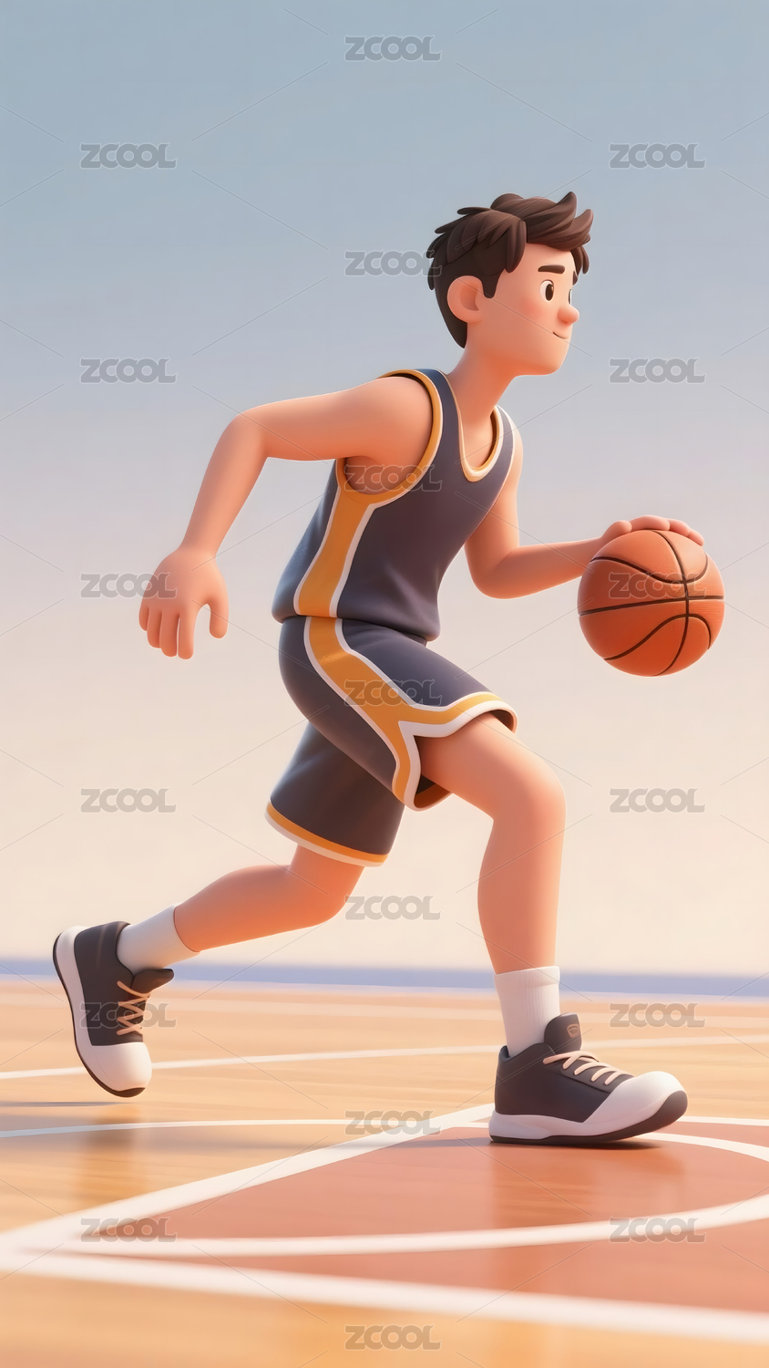 男孩,篮球,卡通,奔跑,运球,运动,活力,儿童,快乐,少年
