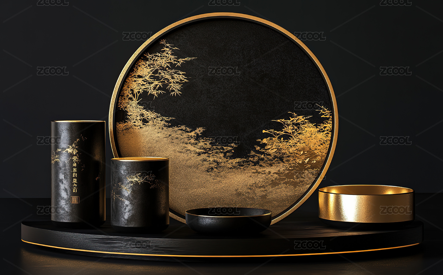 新中式,水墨,金色,展台,竹子,中国风,禅意,东方美学,山水,产品展台