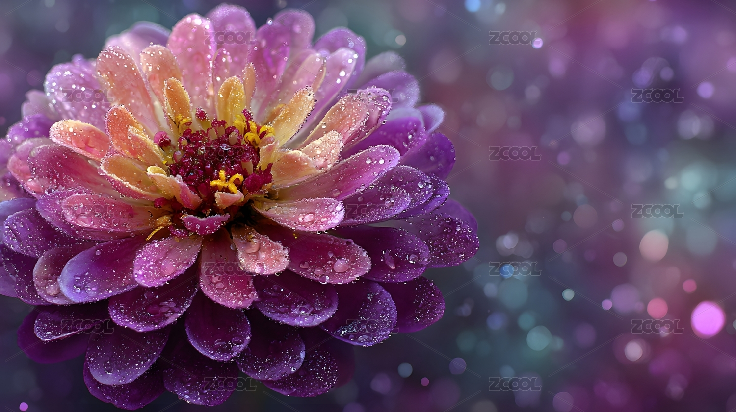 百日菊,七彩,花朵,梦幻,光斑,特写,多彩,花瓣,闪耀,花卉