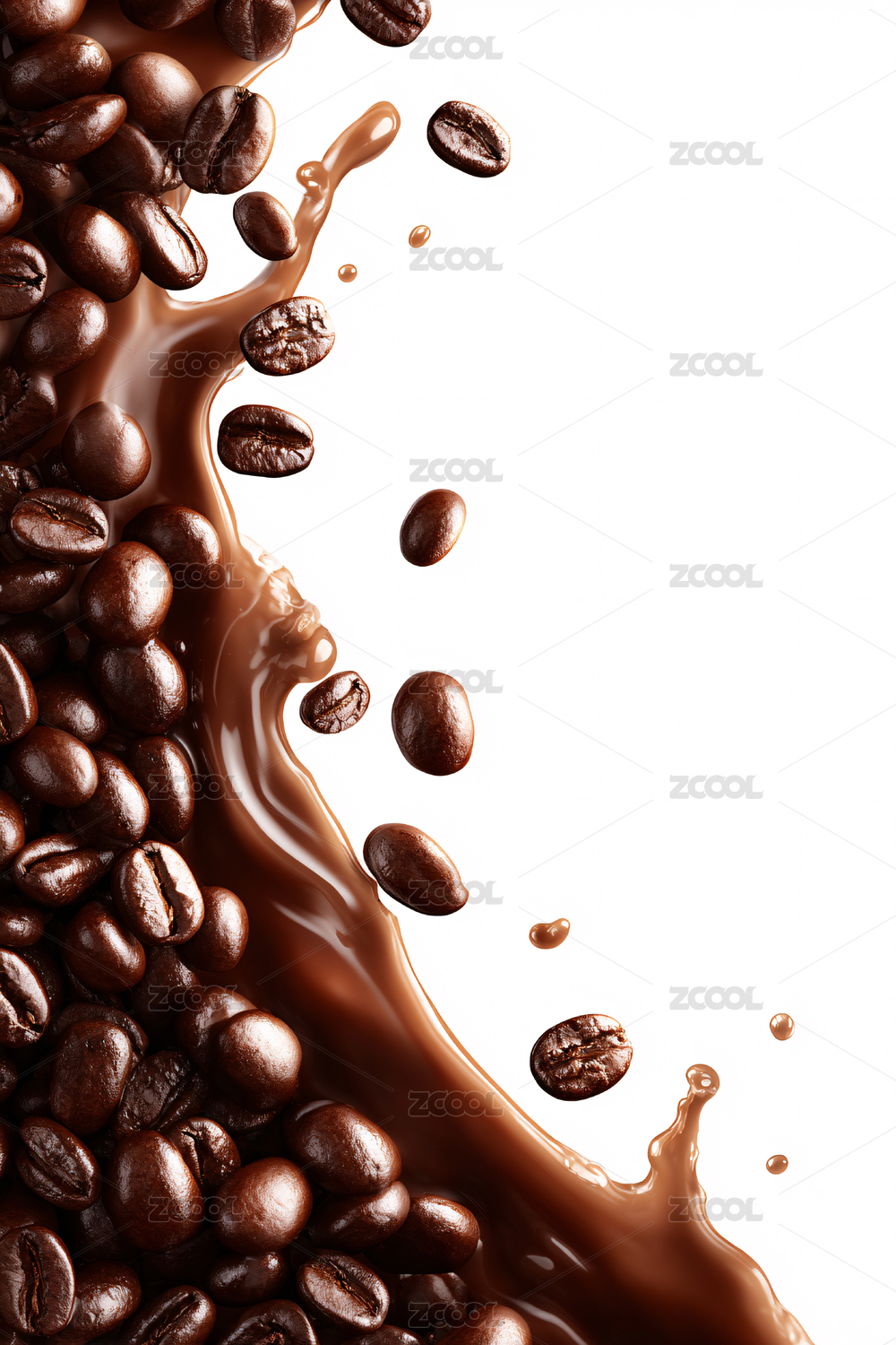 咖啡液飞溅咖啡豆图