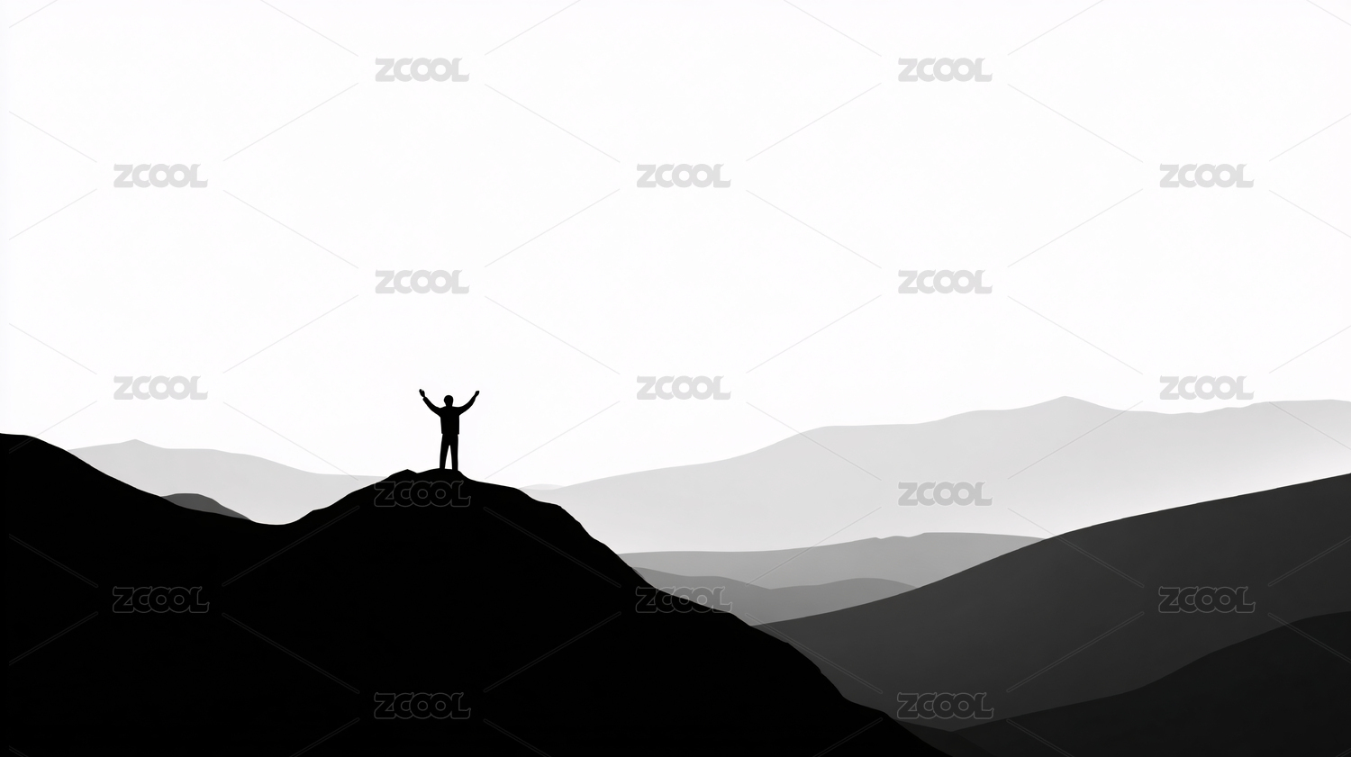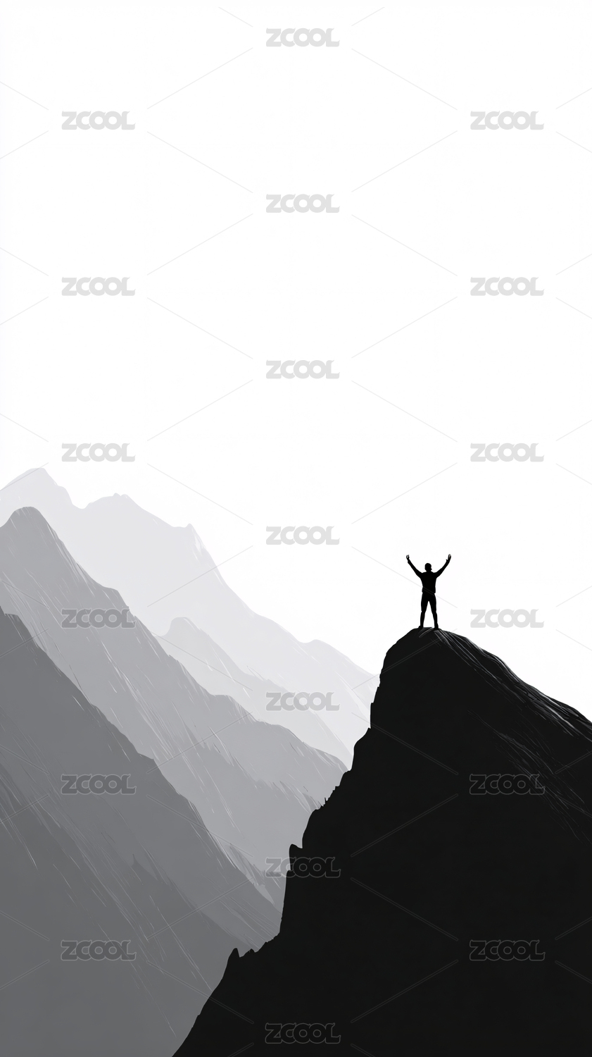 山顶,人,剪影,群山,欢呼,成功,背影,登顶,攀登,巅峰