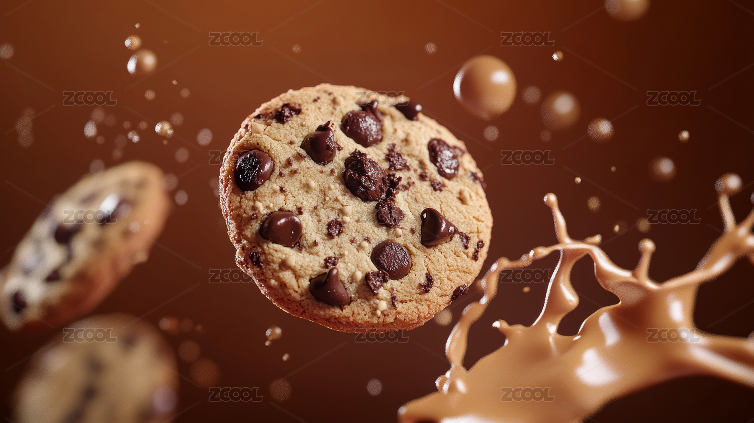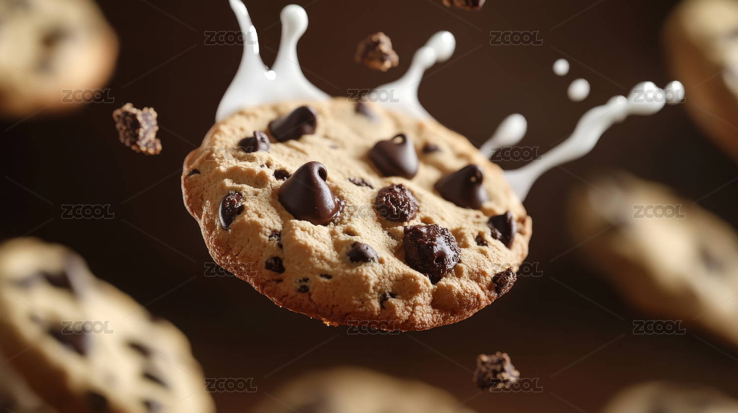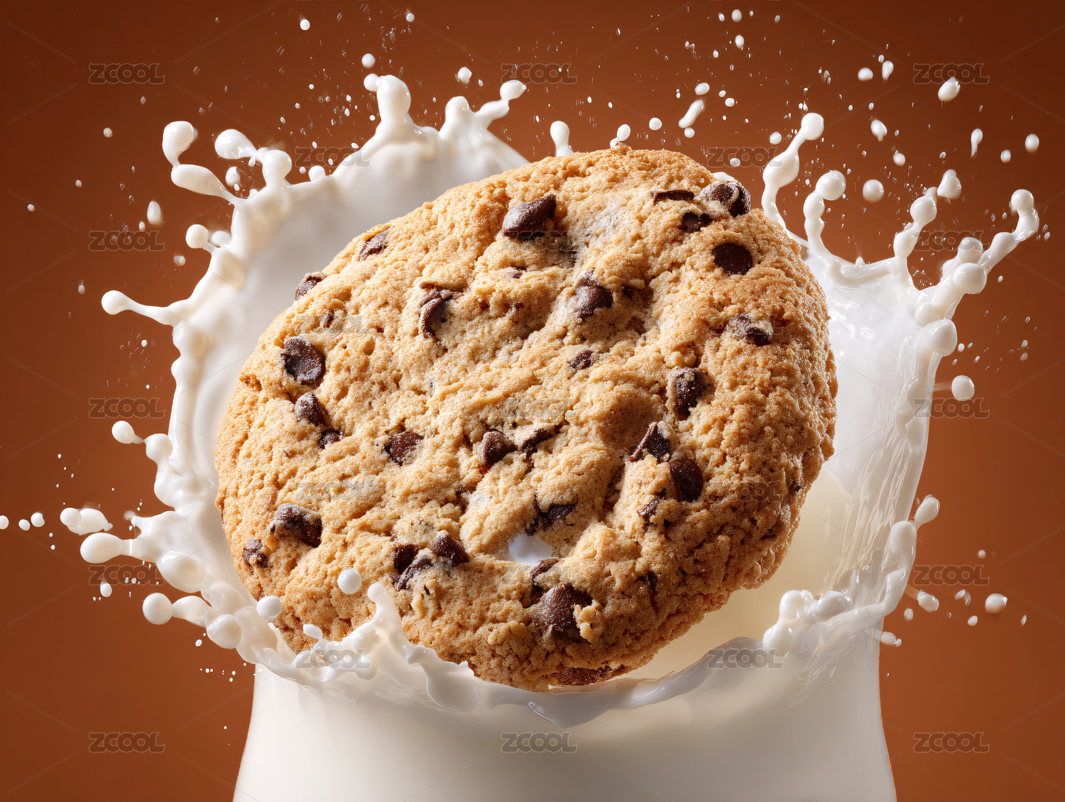 饼干,牛奶,飞溅,巧克力豆,背景,美食,零食,特写,甜点,动态