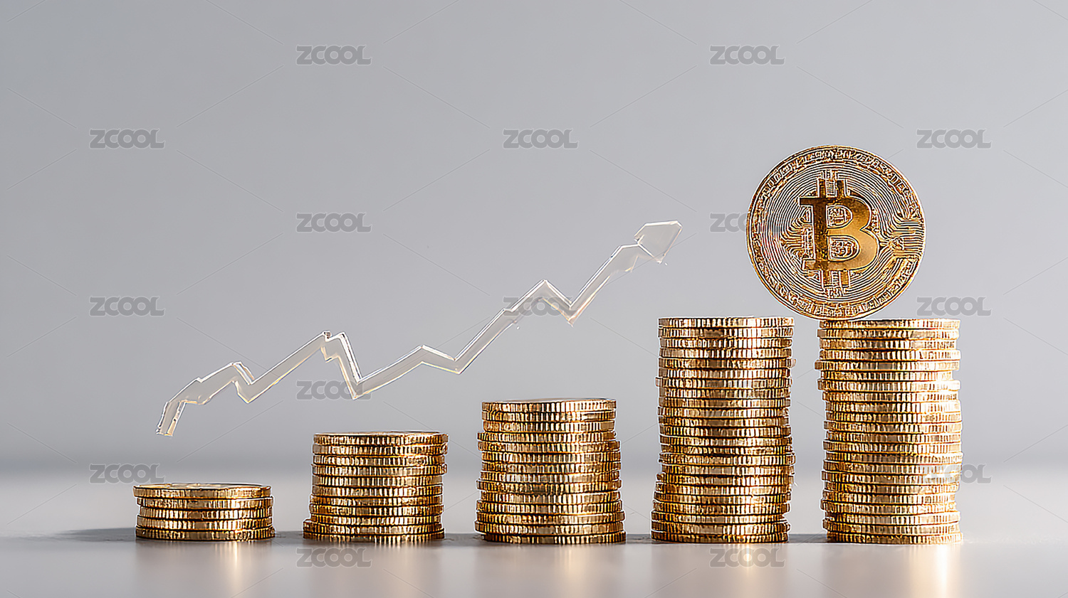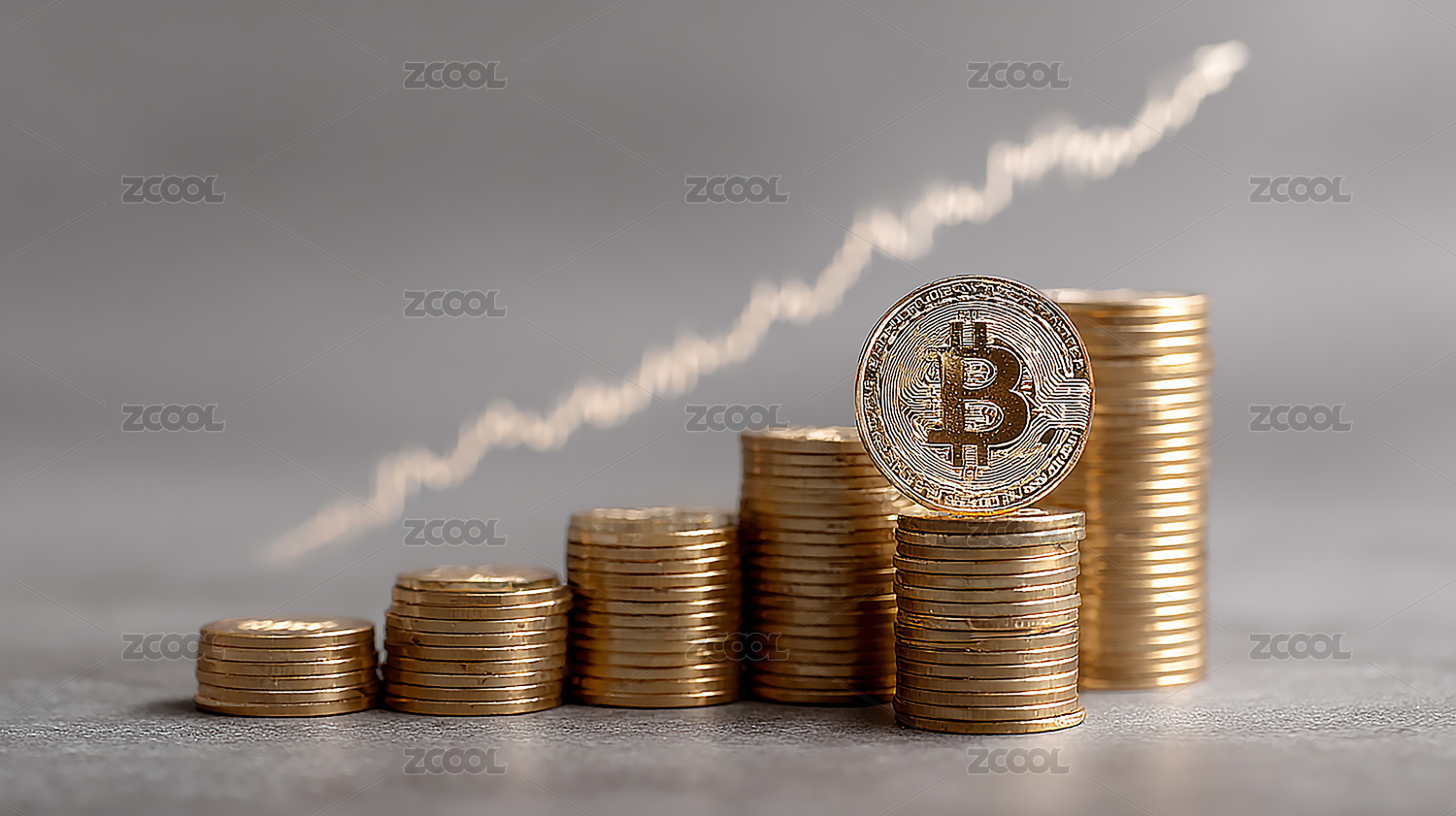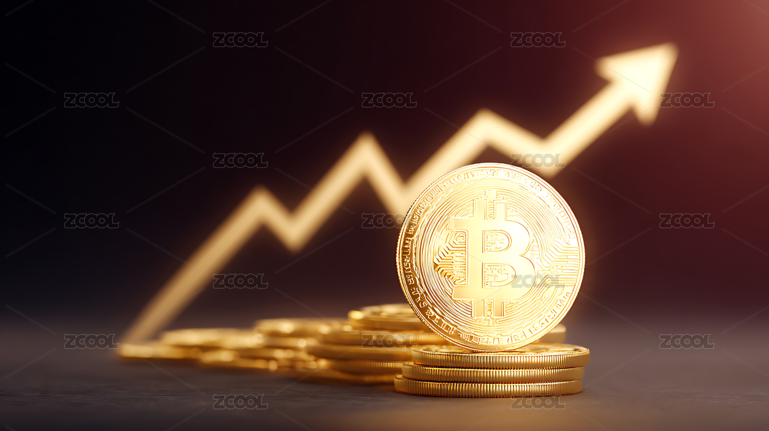 金色比特币柱状图箭头背景
