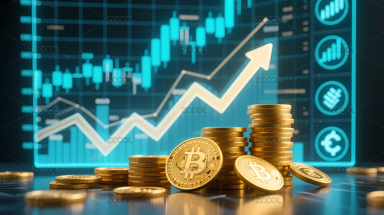 金币比特币箭头蓝色背景