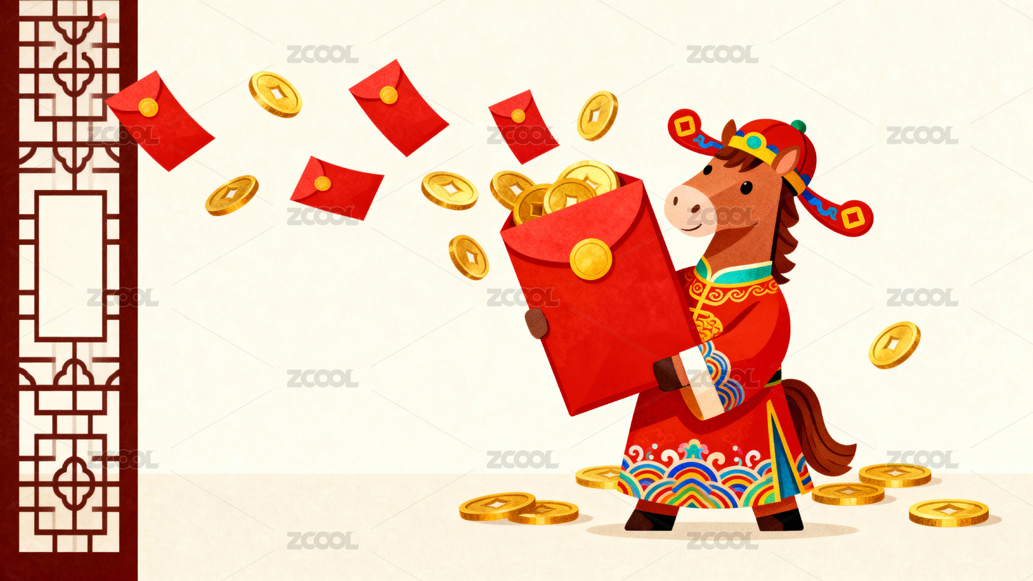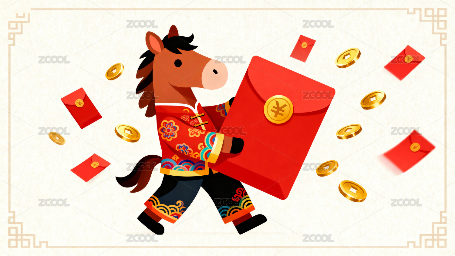 卡通马年春节红包金币