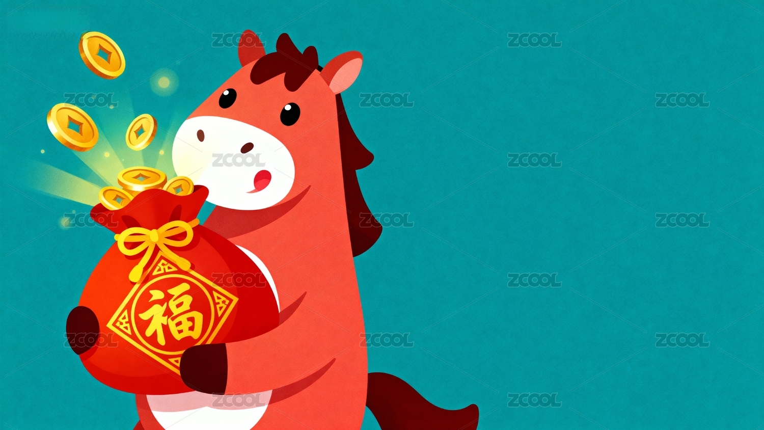 卡通马抱福袋金币飞舞
