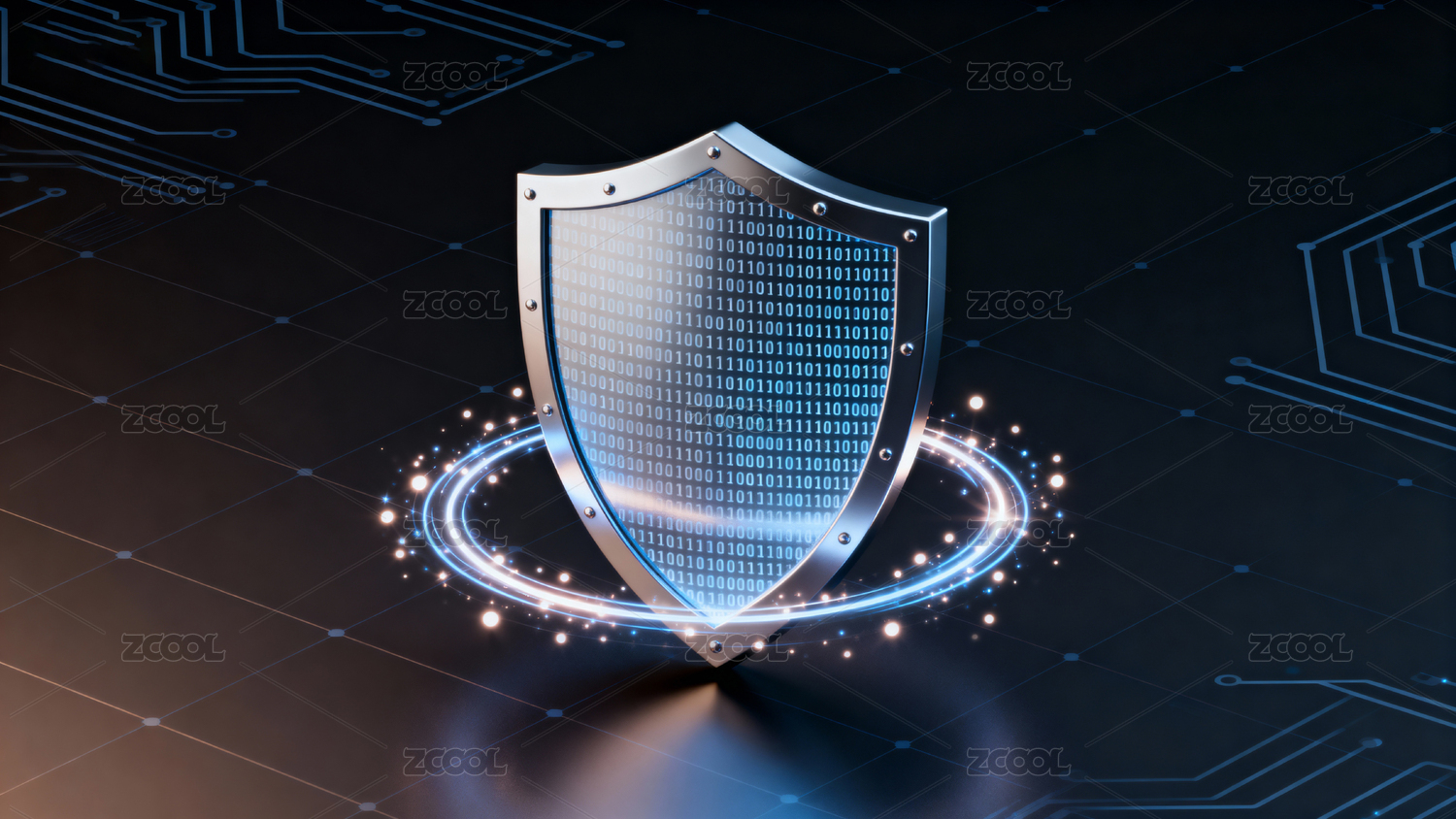 科技盾牌二进制代码环绕