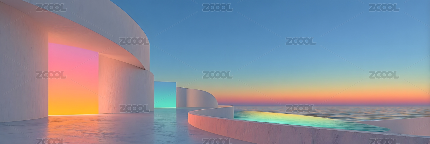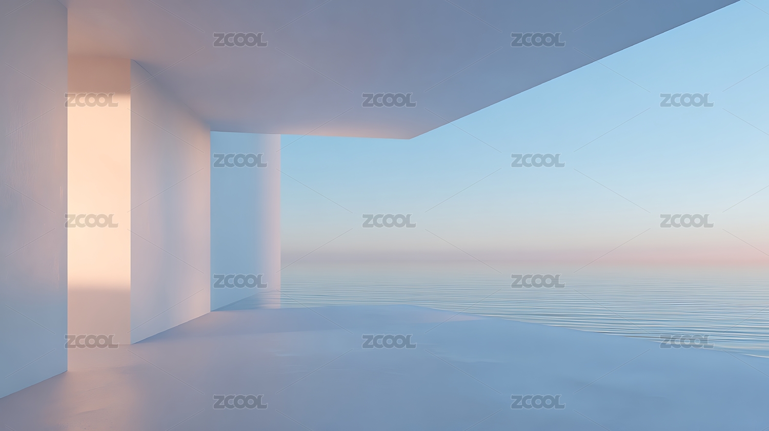 海洋,天空,蓝色,几何,现代,建筑,空间,极简,景观,平静
