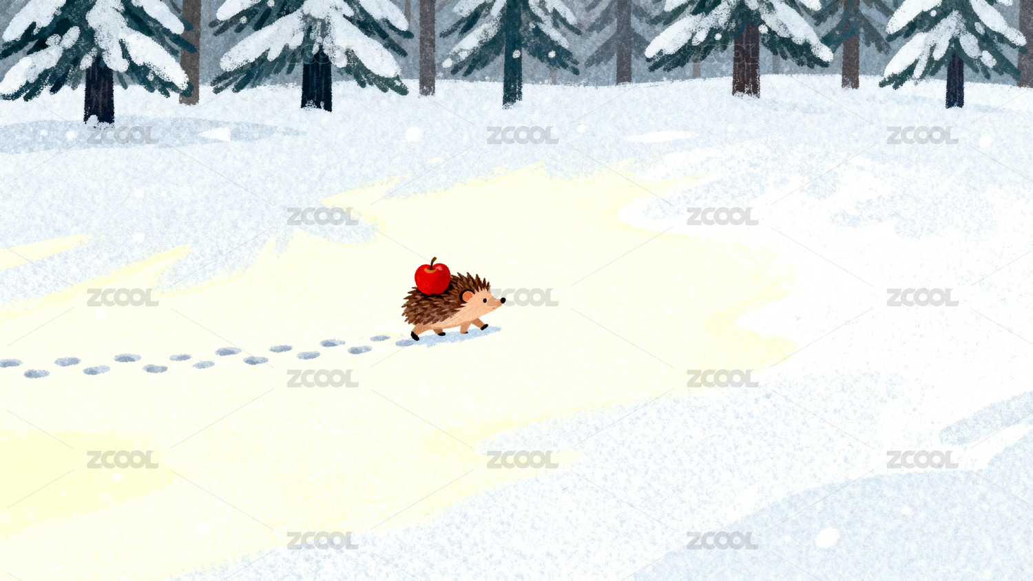 红衣的小女孩走在漫天雪夜前方是温暖的灯光