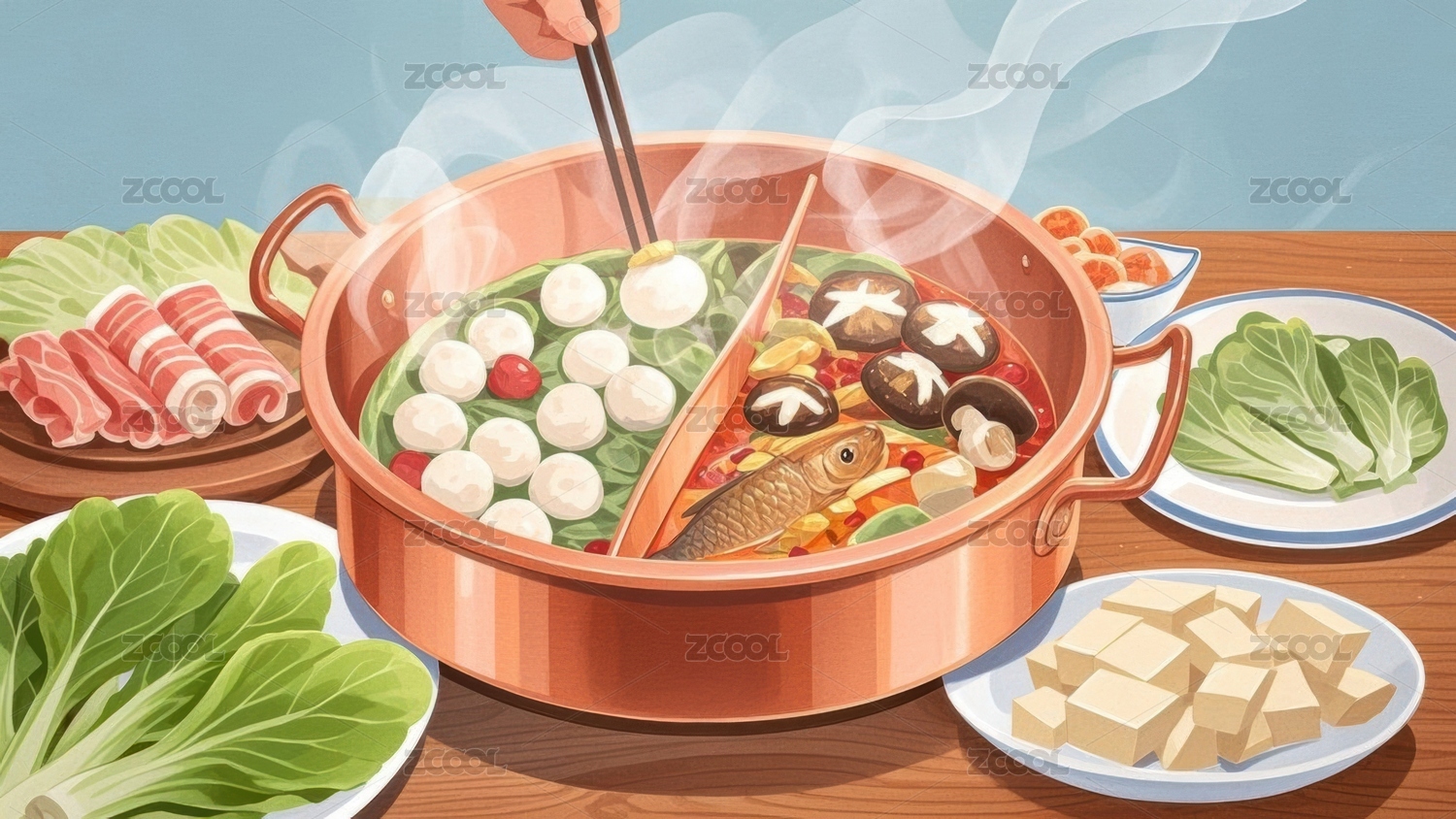 火锅美食插画