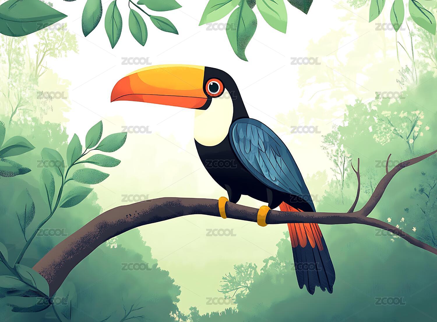 森林里的巨嘴鸟插画