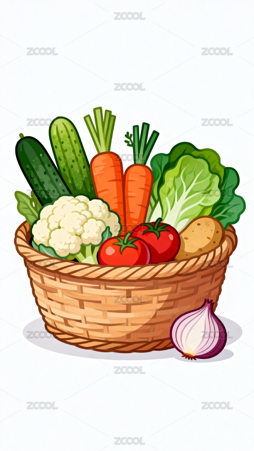 蔬菜,篮子,插画,有机蔬菜,新鲜蔬菜,手绘,健康饮食,绿色蔬菜,番茄,青椒