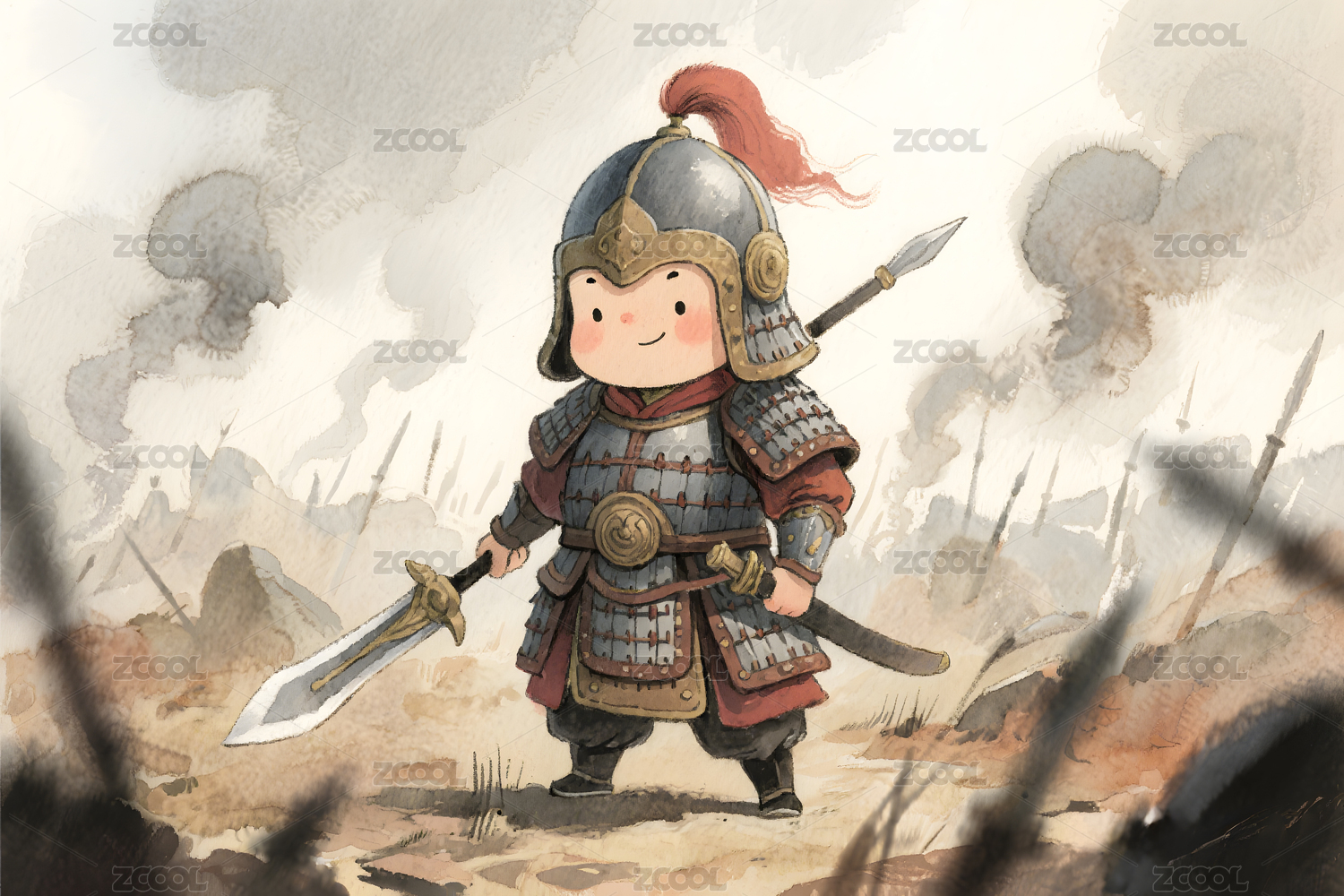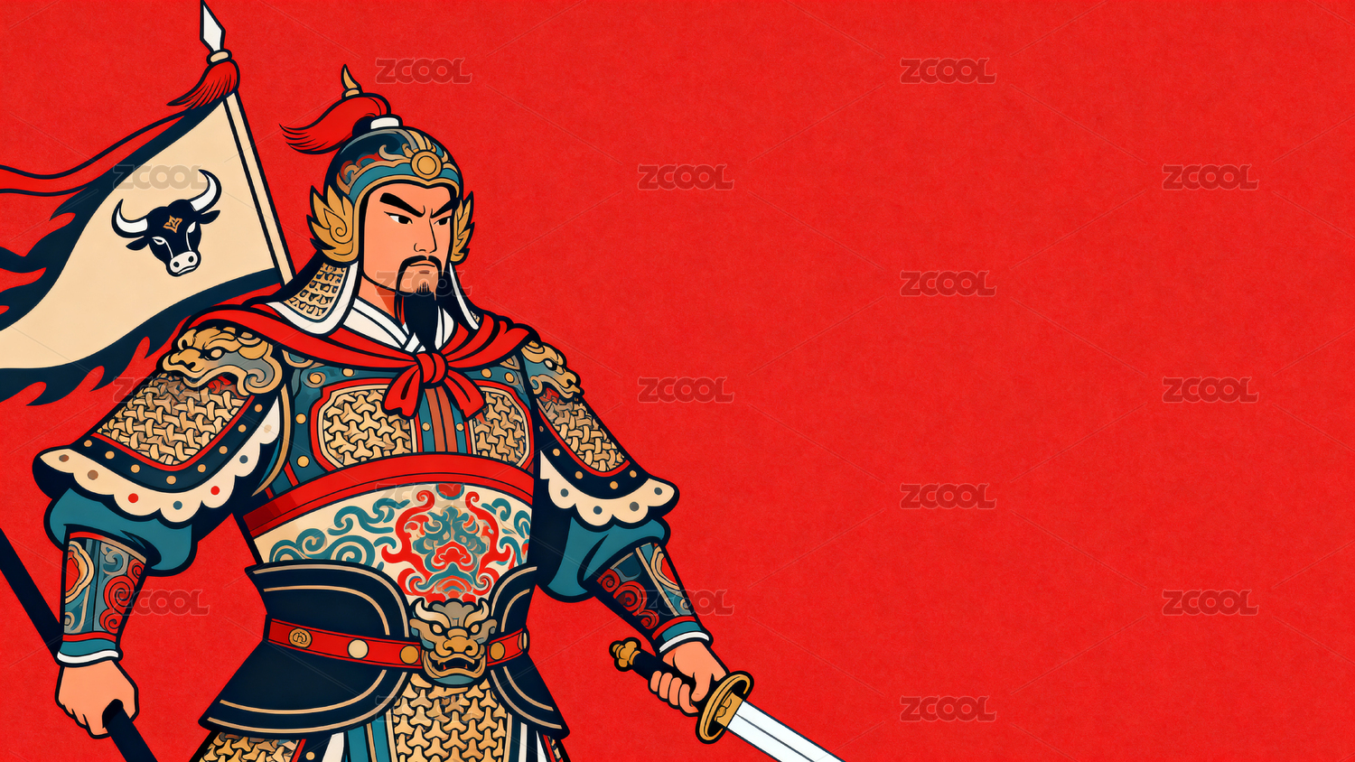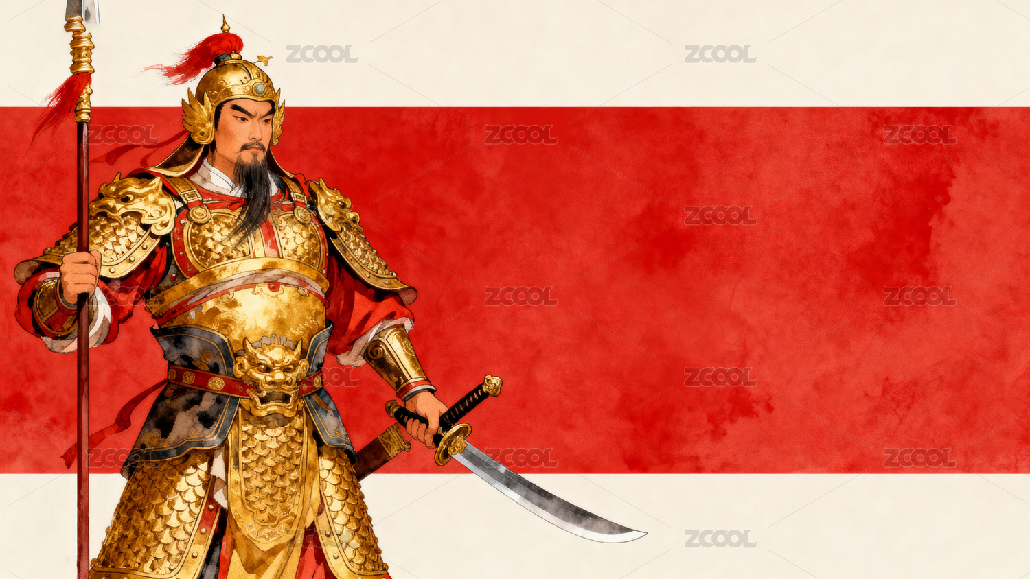 古风,武将,将军,水墨画,持剑,立像,盔甲,红袍,中国风,武侠