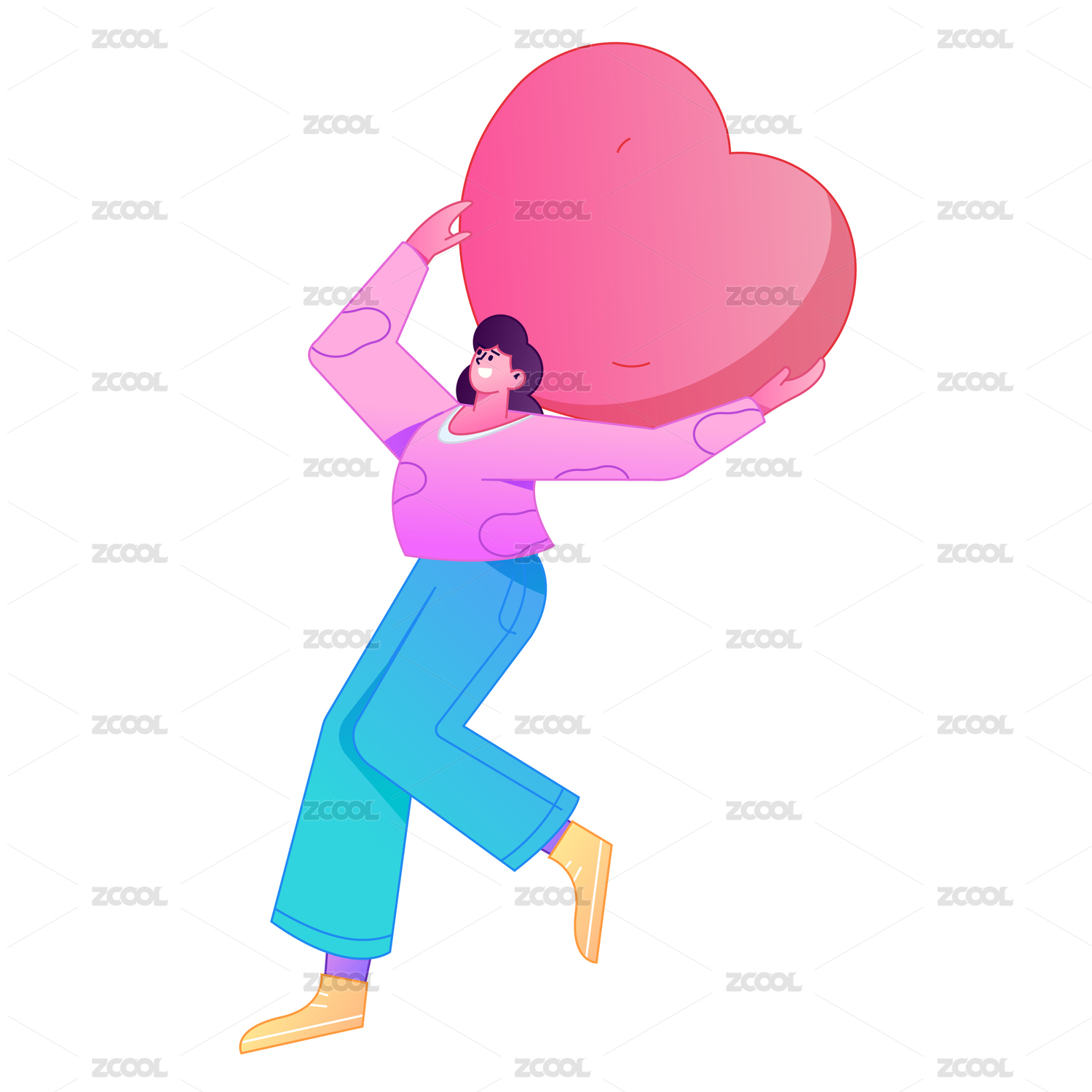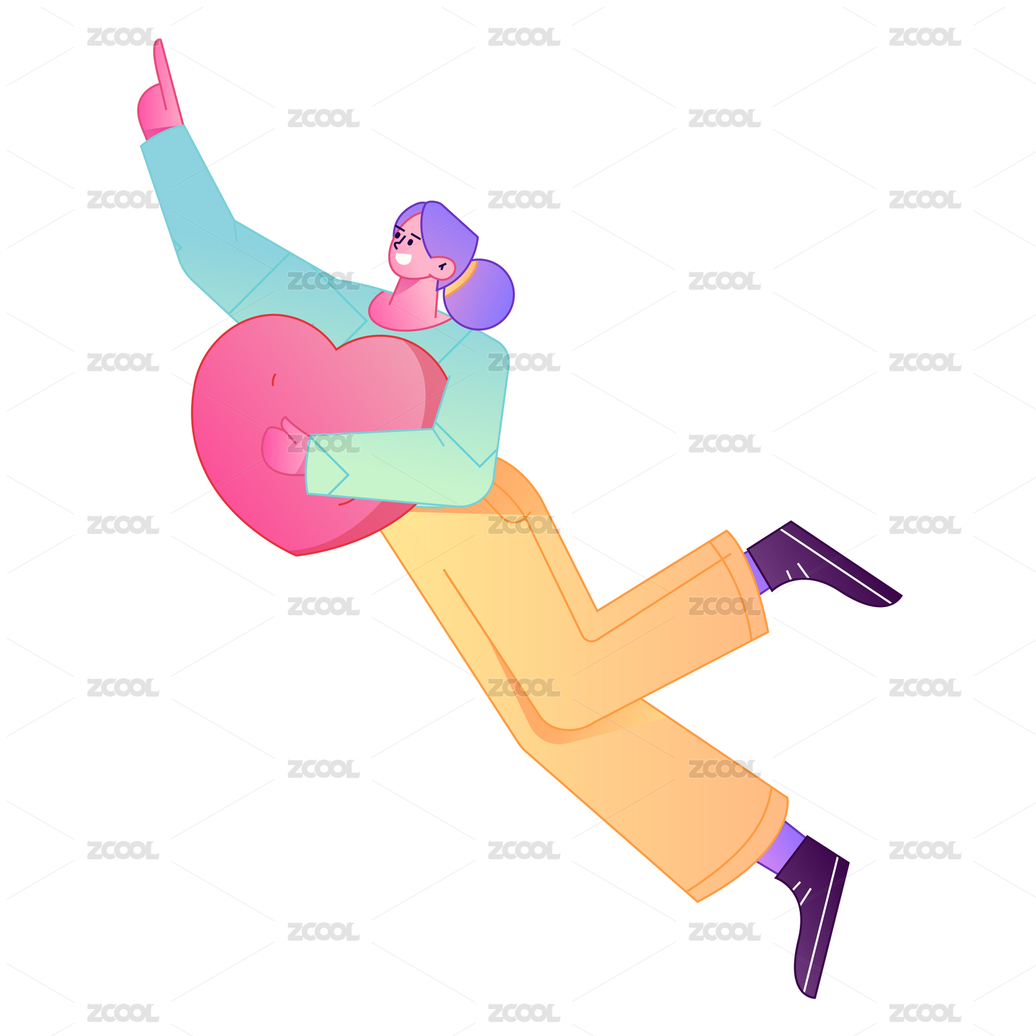 手拿爱心动作造型的人物矢量扁平渐变插画