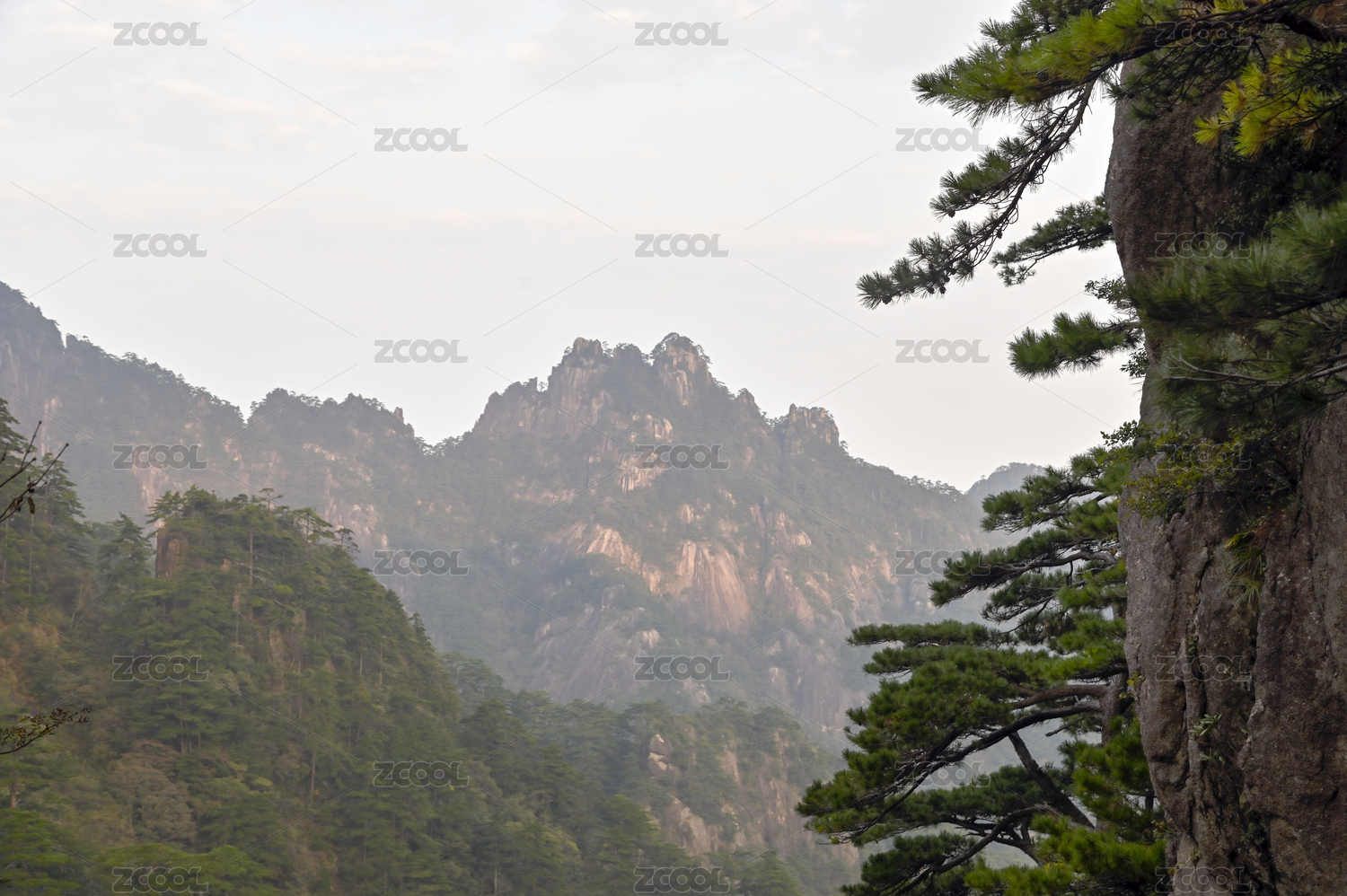 江西上饶三清山的松树与南海岸群山