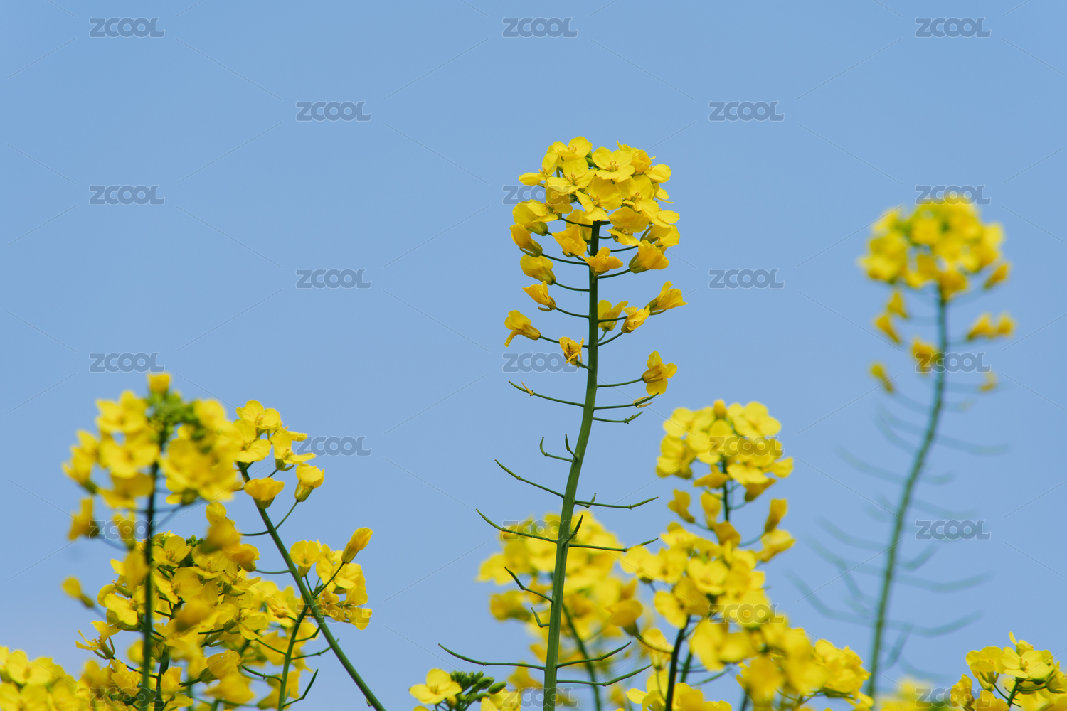 春暖花开的季节仰拍蓝天下盛开的油菜花