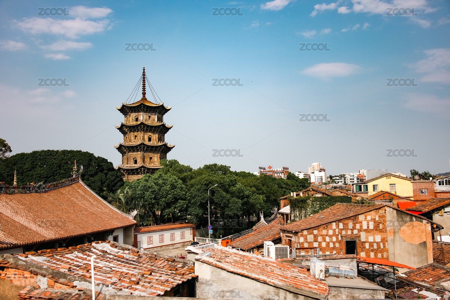 福建泉州,泉州风景,泉州西街,开元寺塔,地标,传统,中式,红瓦,屋顶,建筑