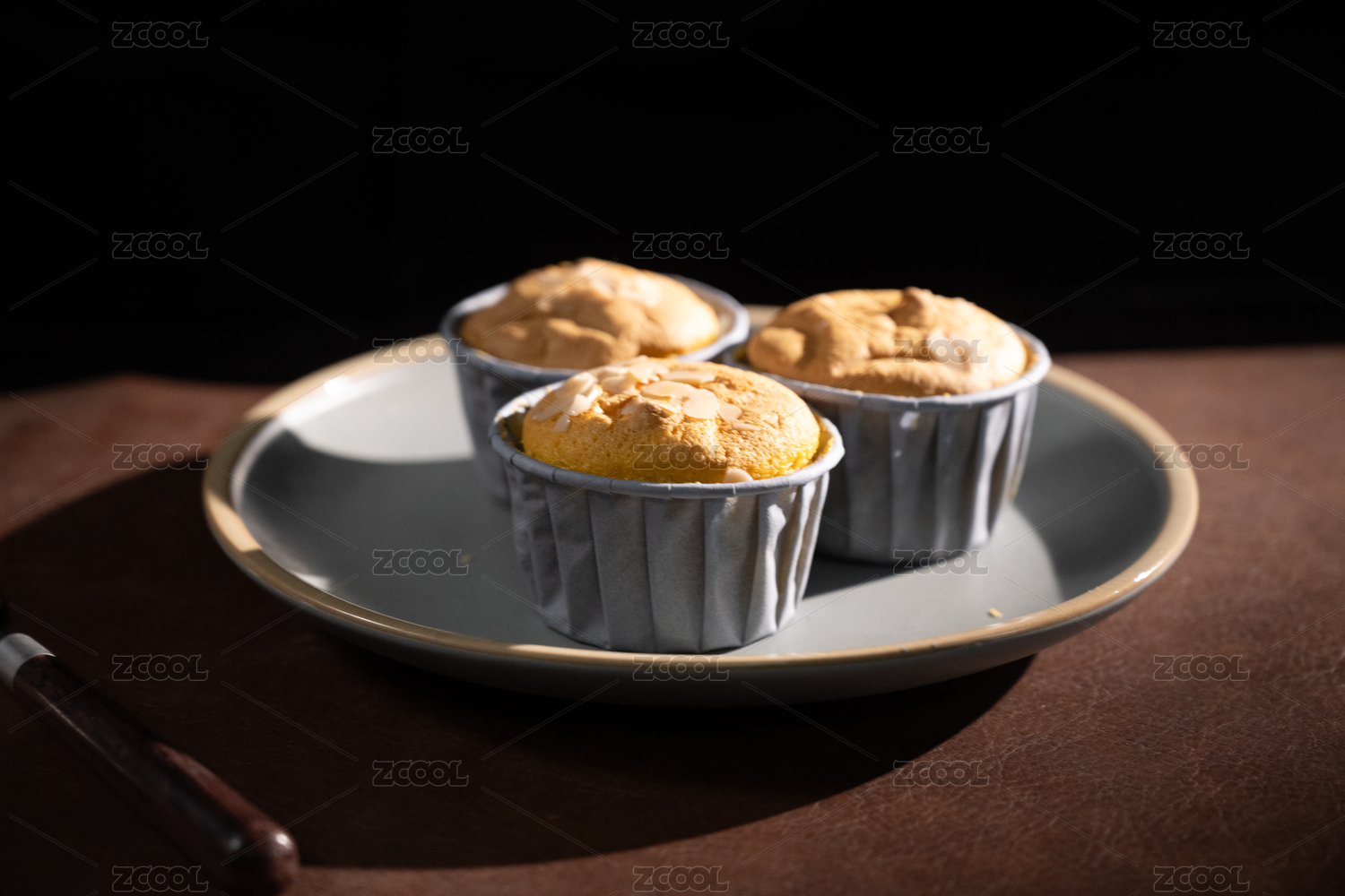 桌面上的盘子里的美味可口的纸杯蛋糕