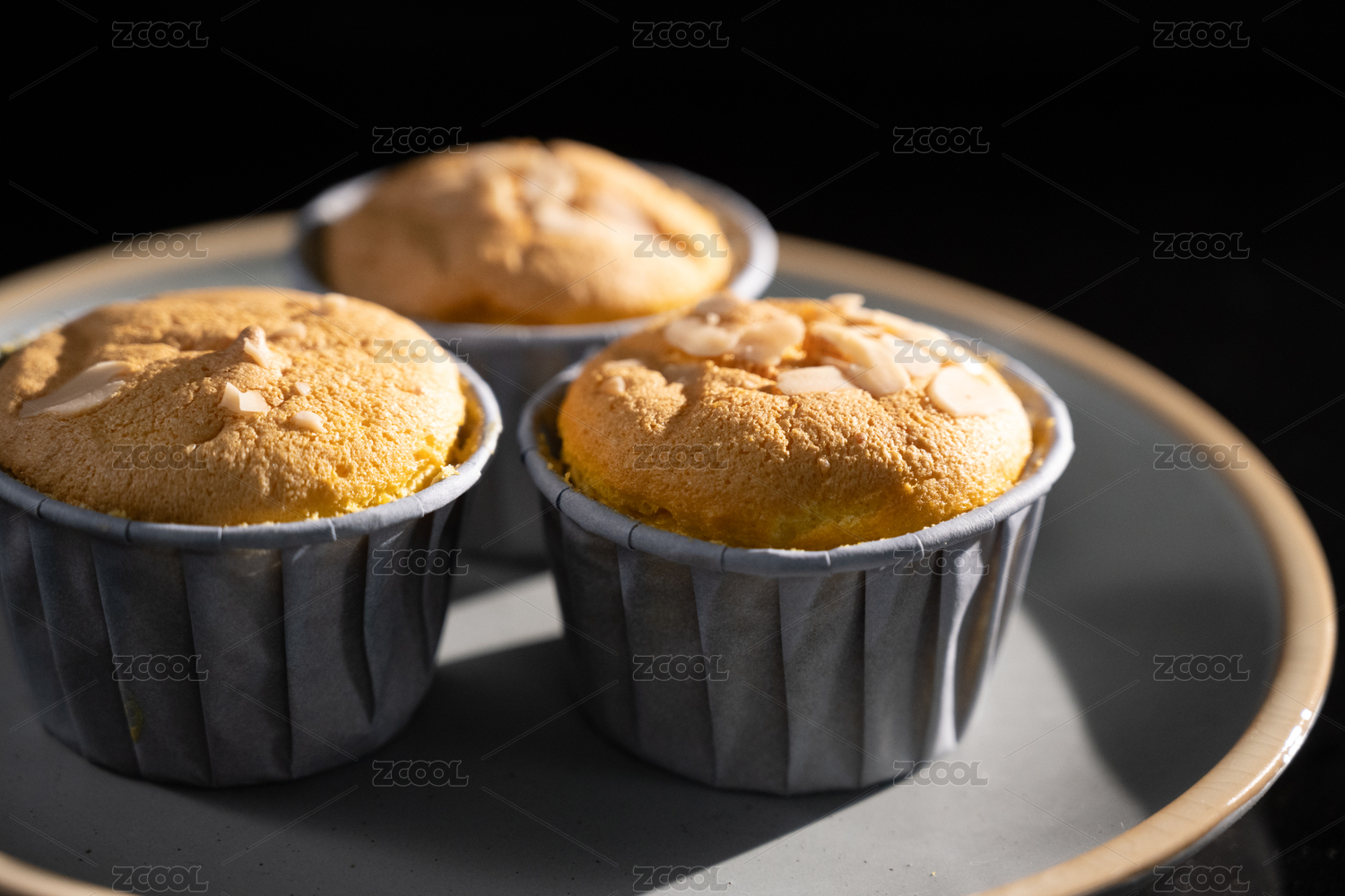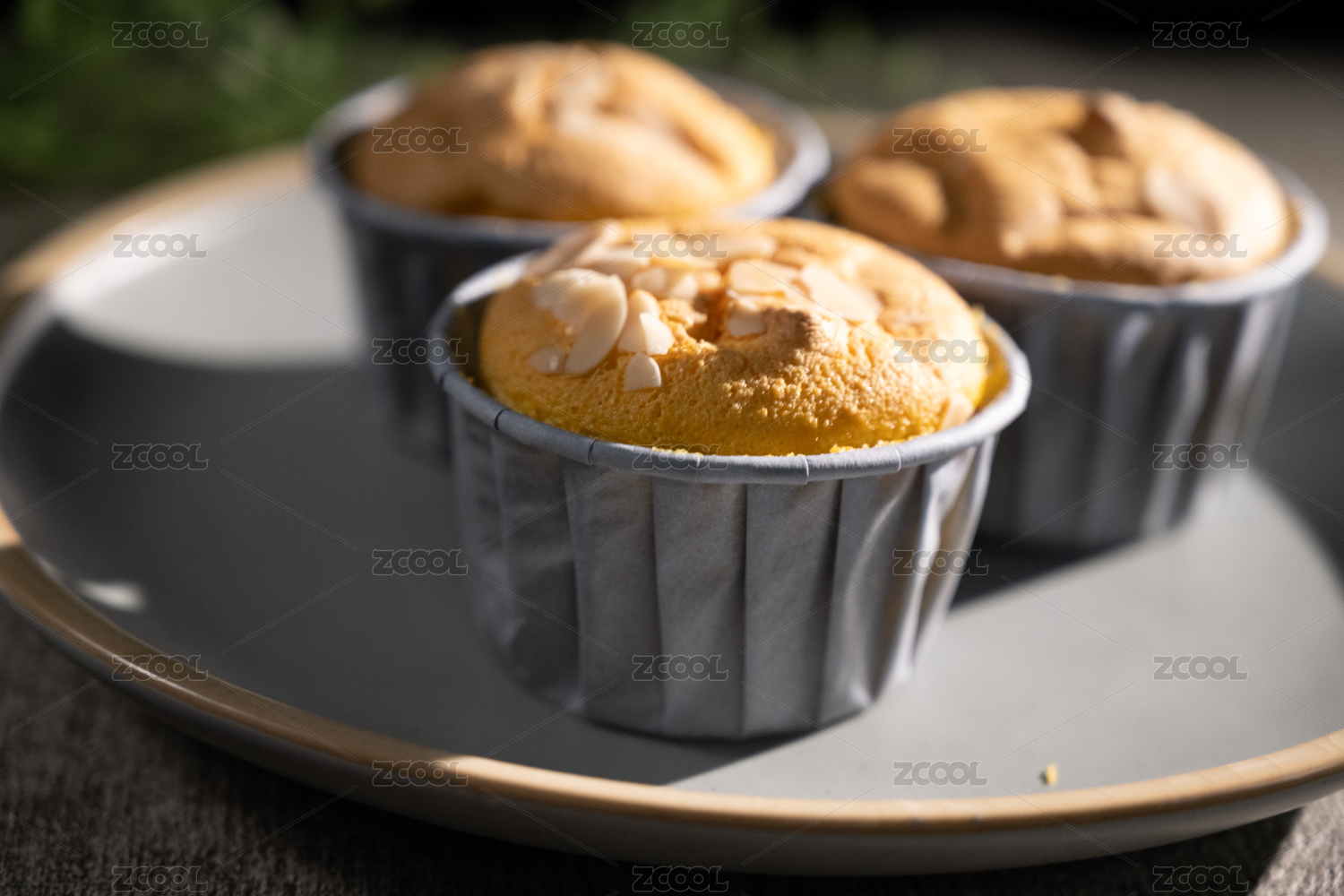 桌面上的盘子里的美味可口的纸杯蛋糕