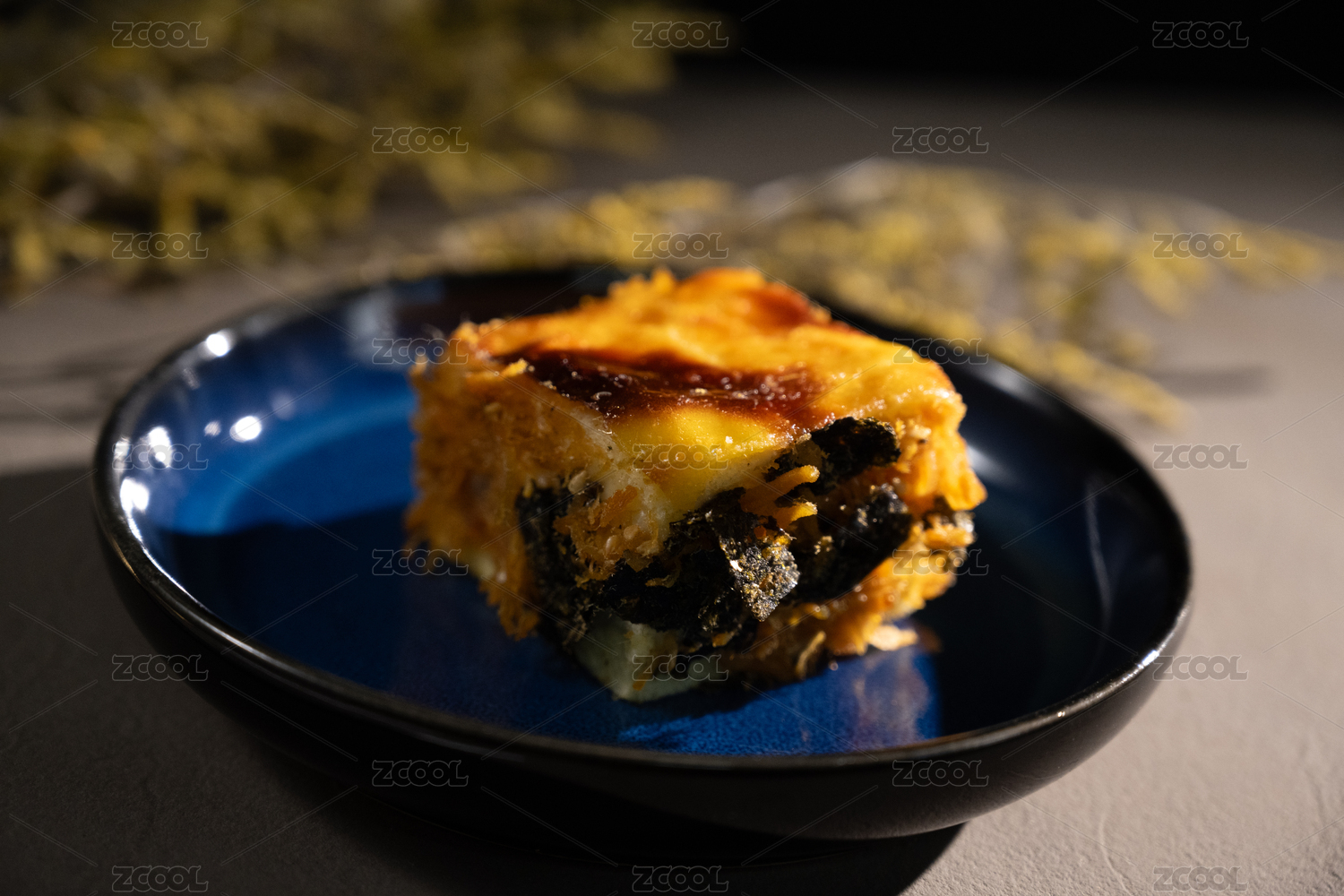 桌面上的盘子里的美味可口的芝士肉松蛋糕