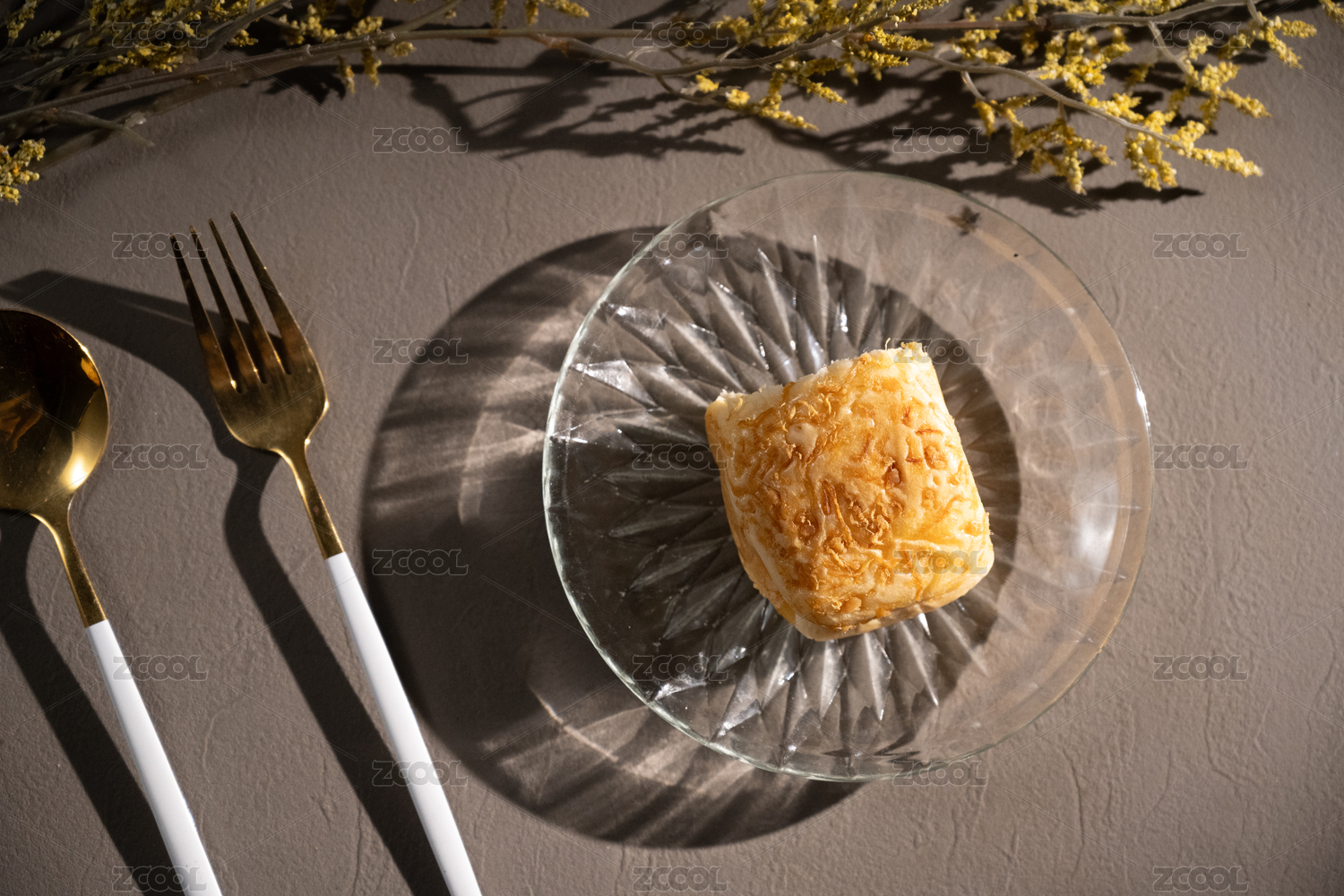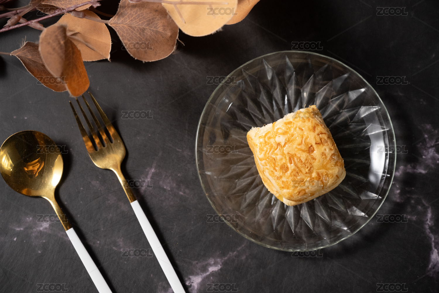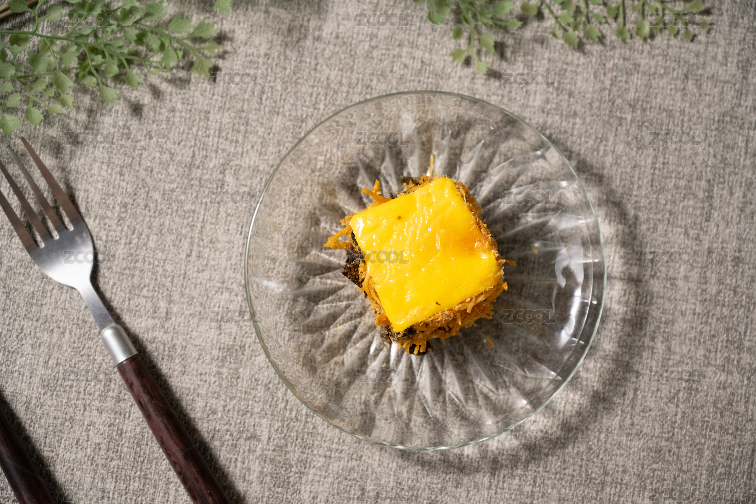 桌面上的盘子里的美味可口的芝士肉松蛋糕