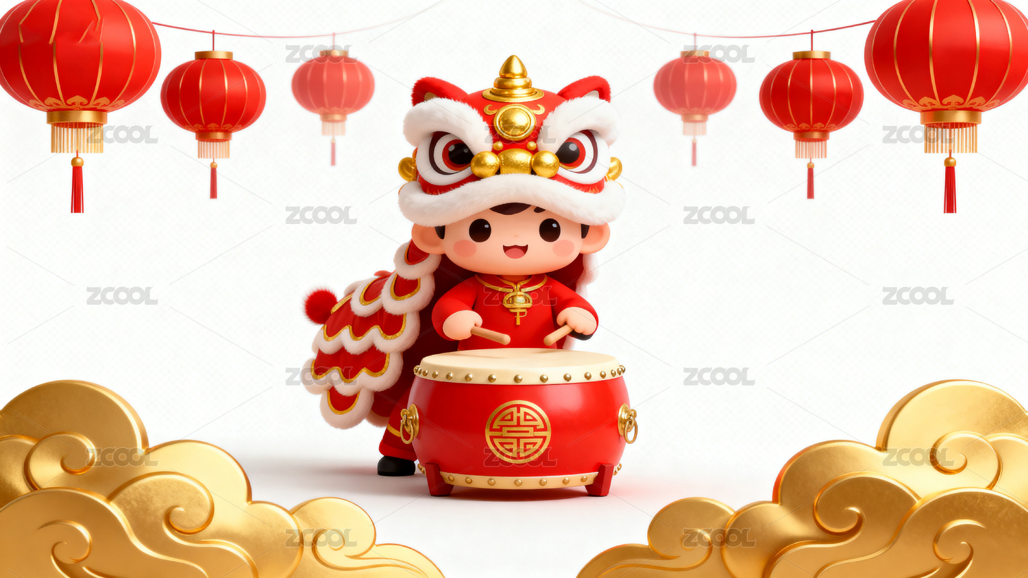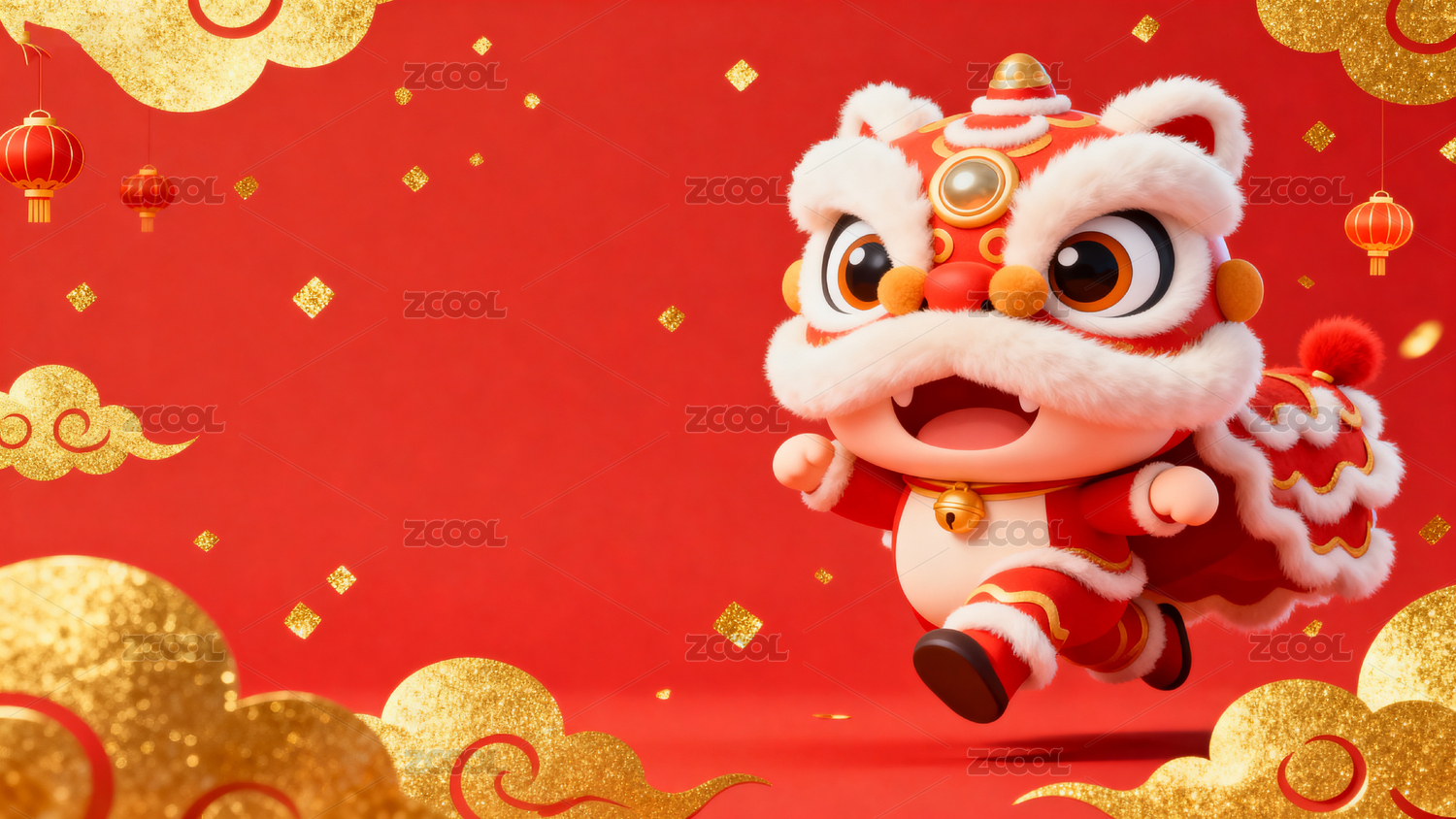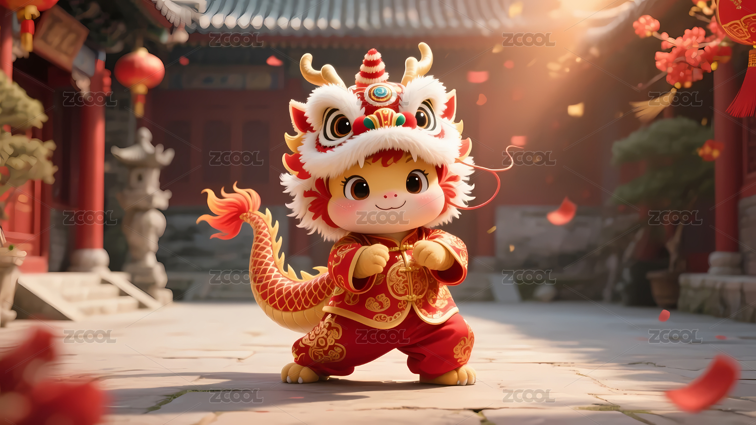 3D,立体,醒狮,狮子,艺术,传统,中国风,卡通,可爱,红色