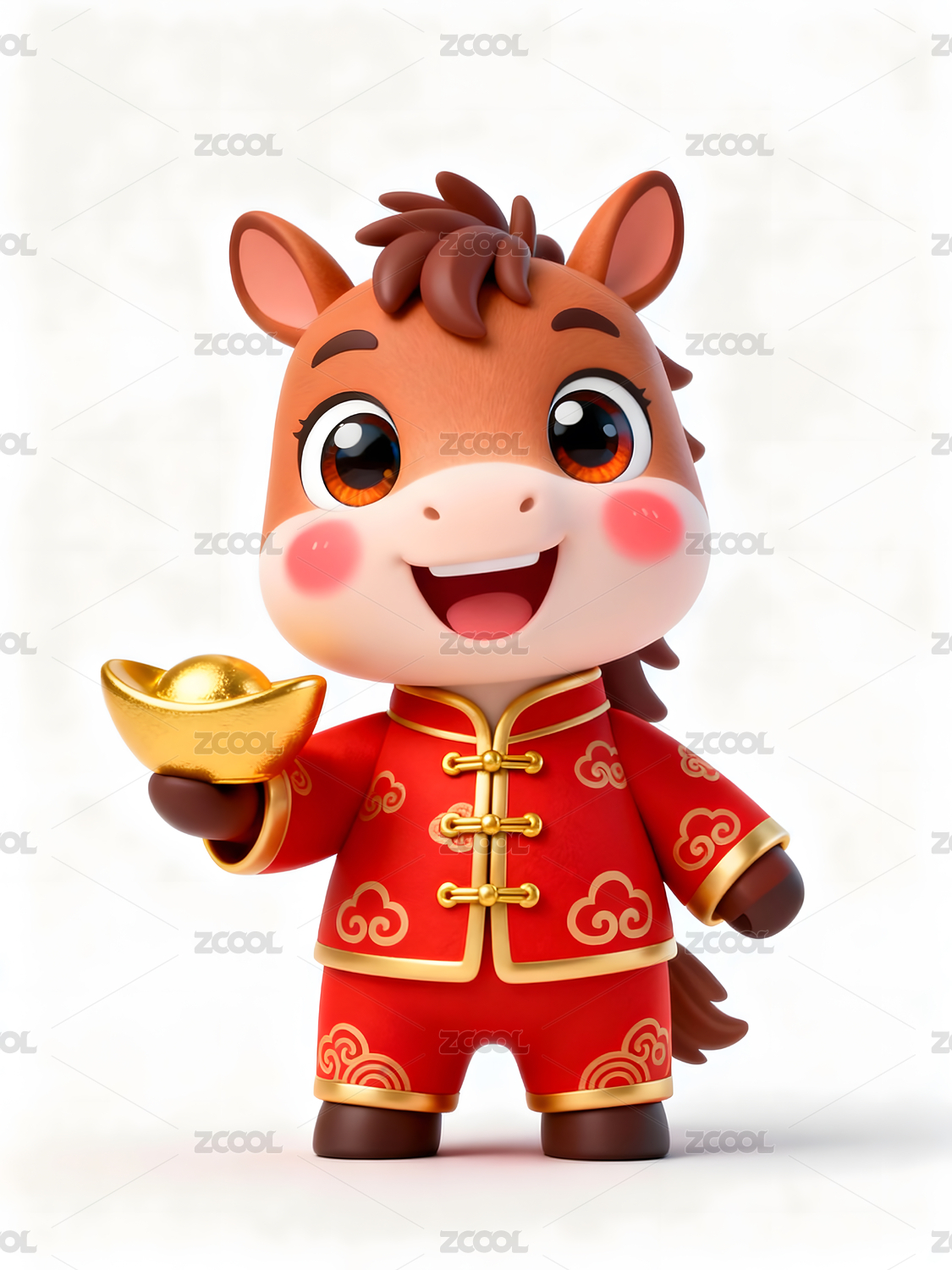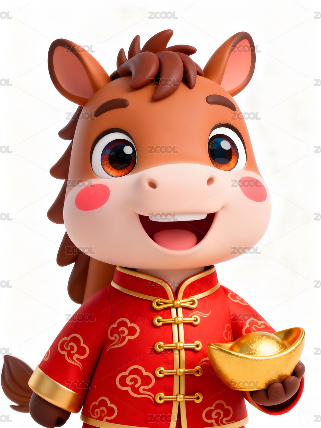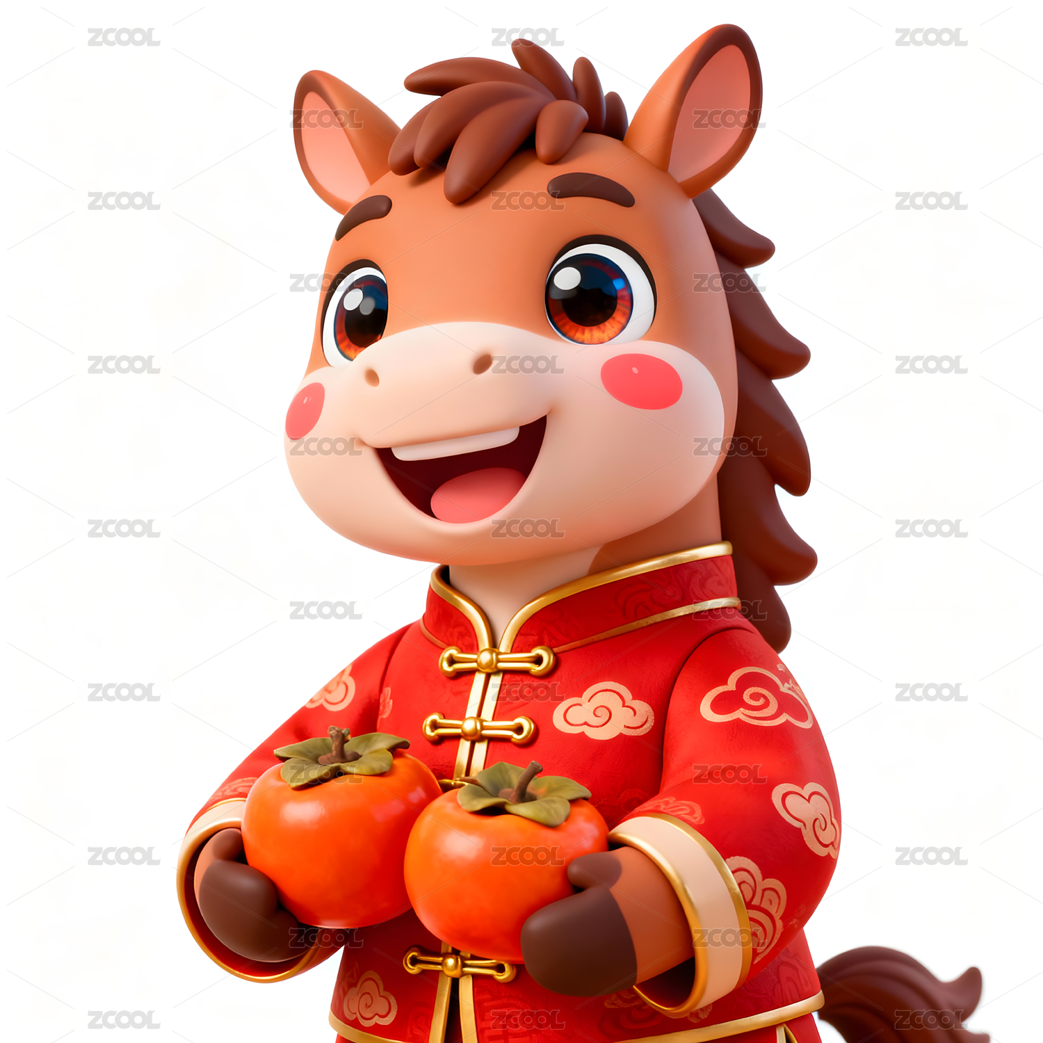 马,马年,3D,立体,卡通,形象,拟人,可爱,动画,微笑