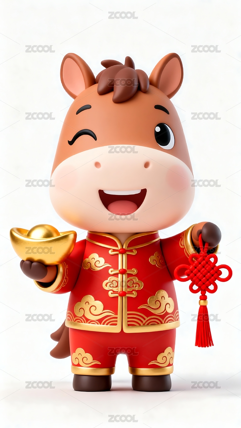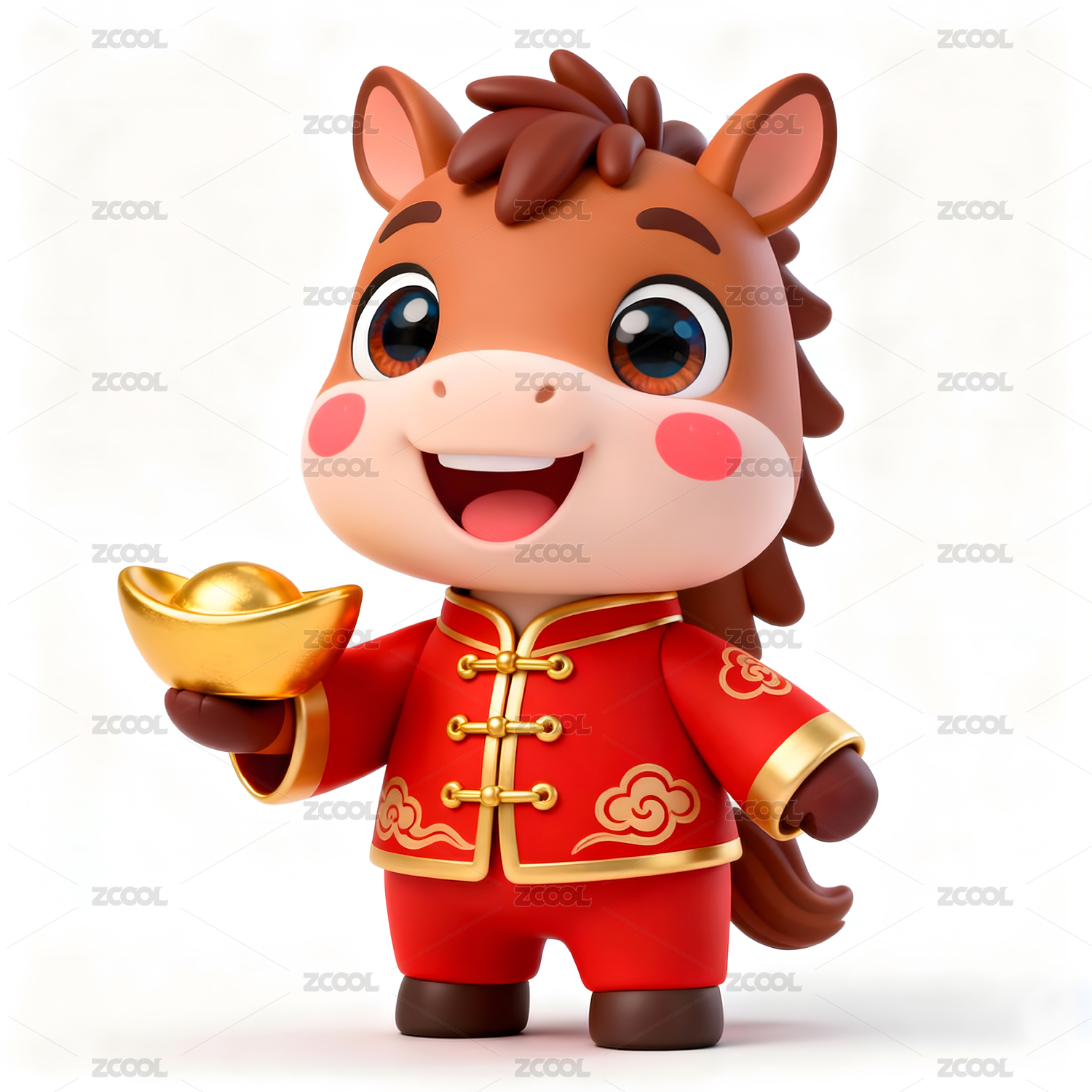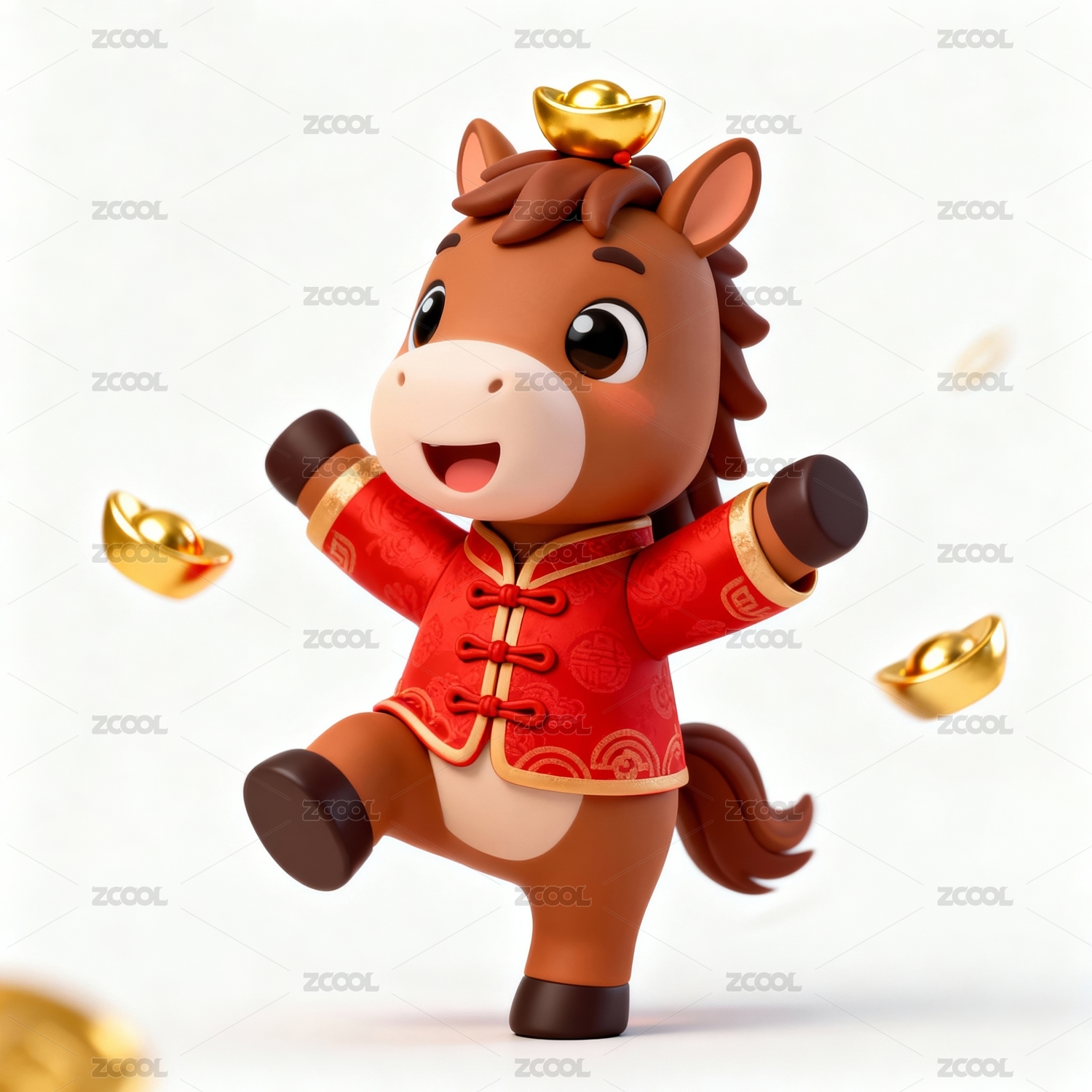 马,马年,3D,立体,卡通,形象,拟人,可爱,动画,微笑