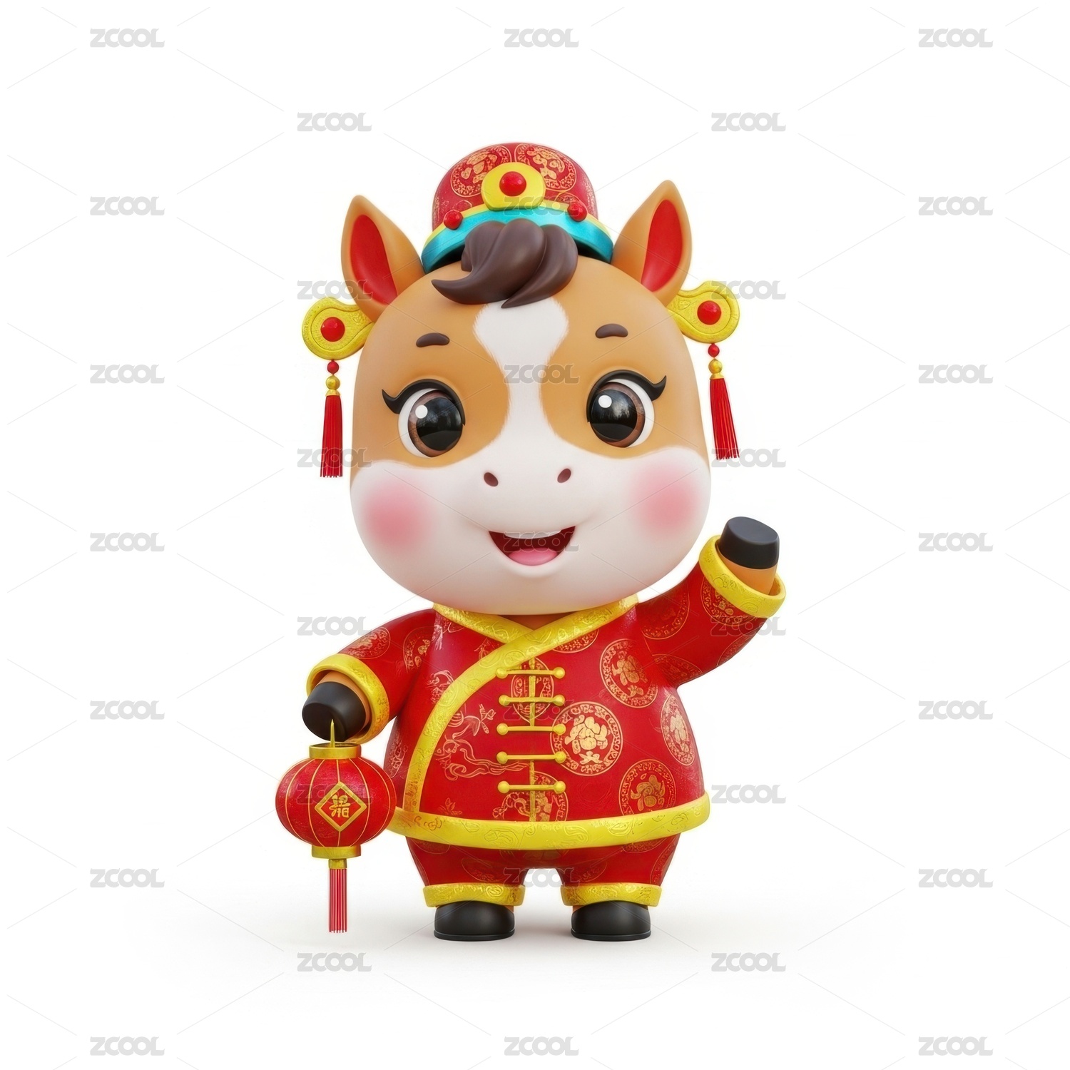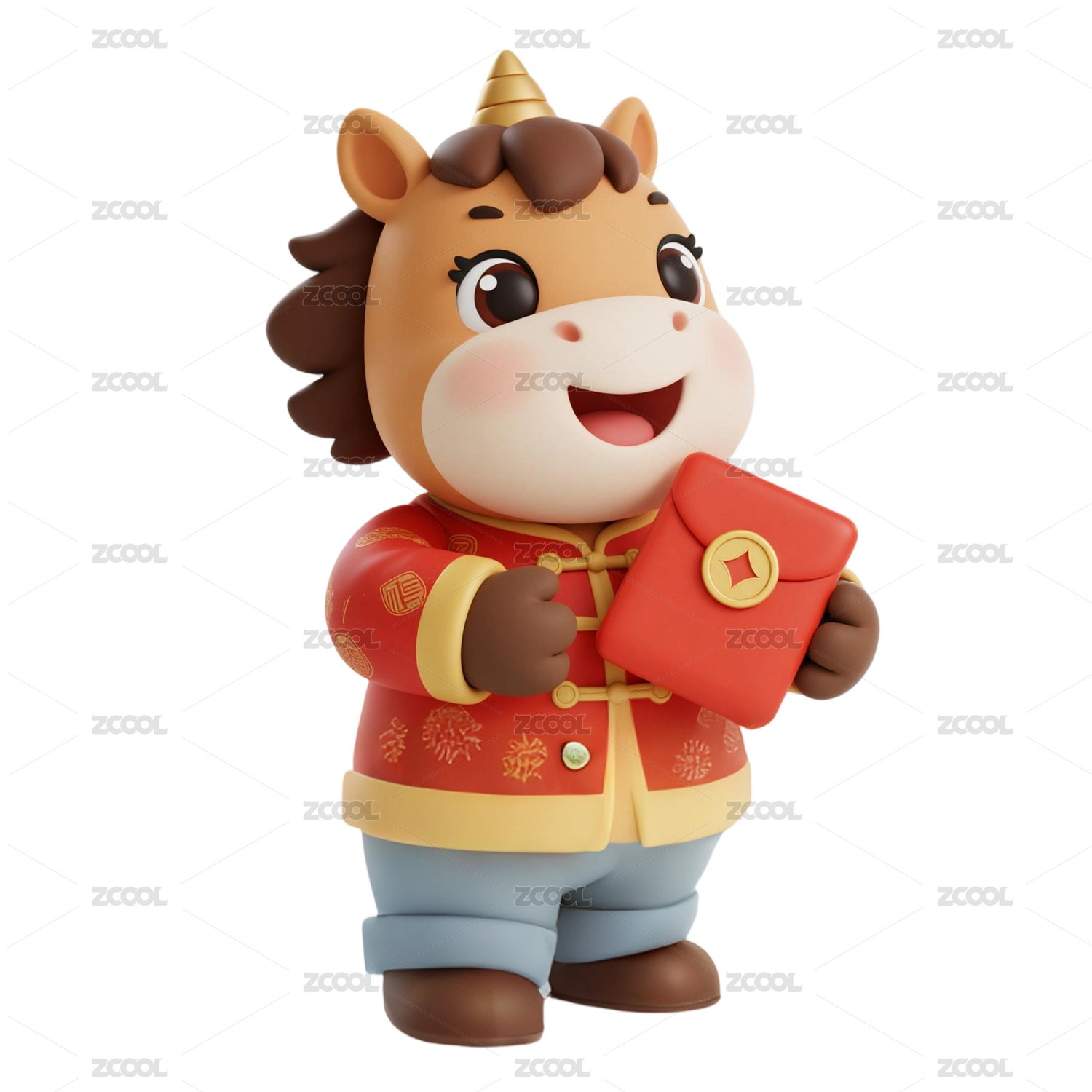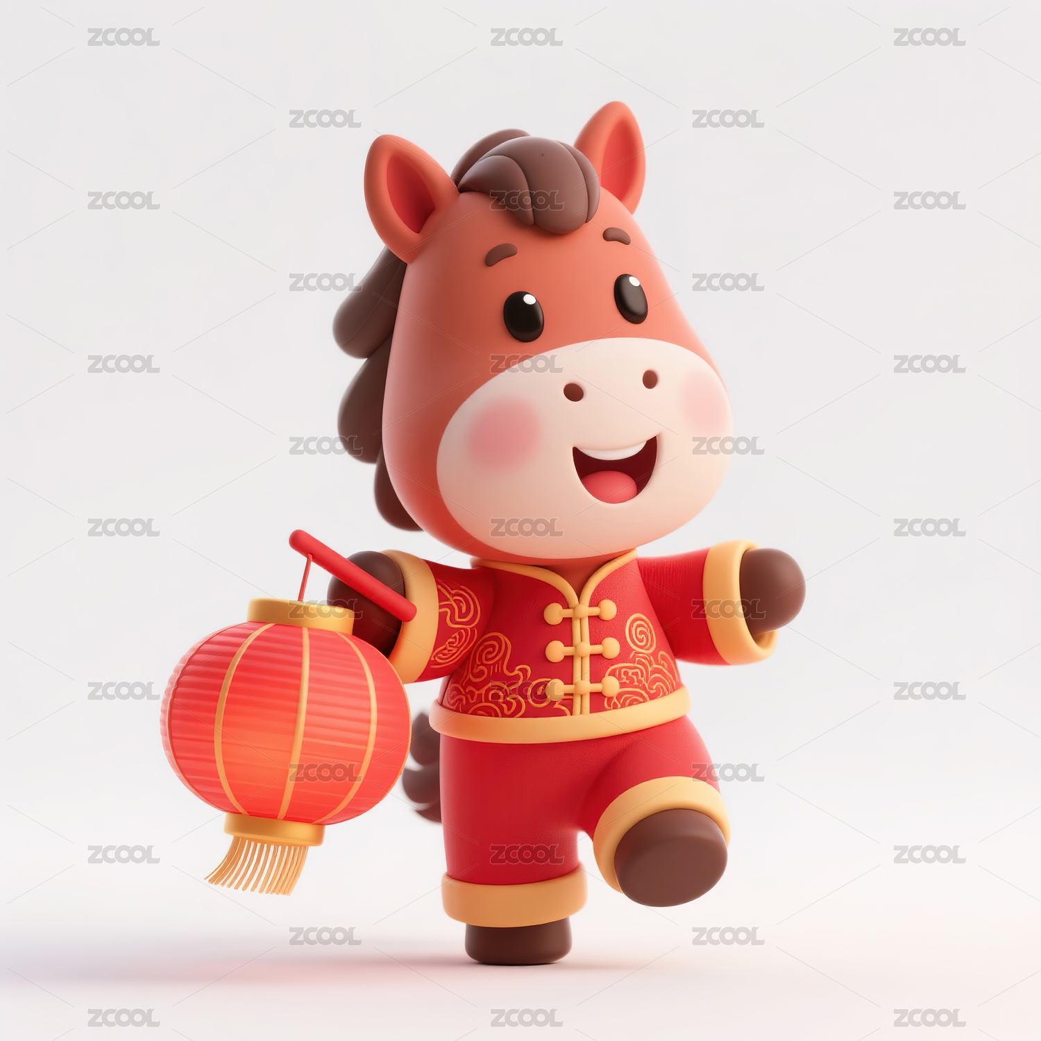 马,马年,3D,立体,卡通,形象,拟人,可爱,动画,微笑