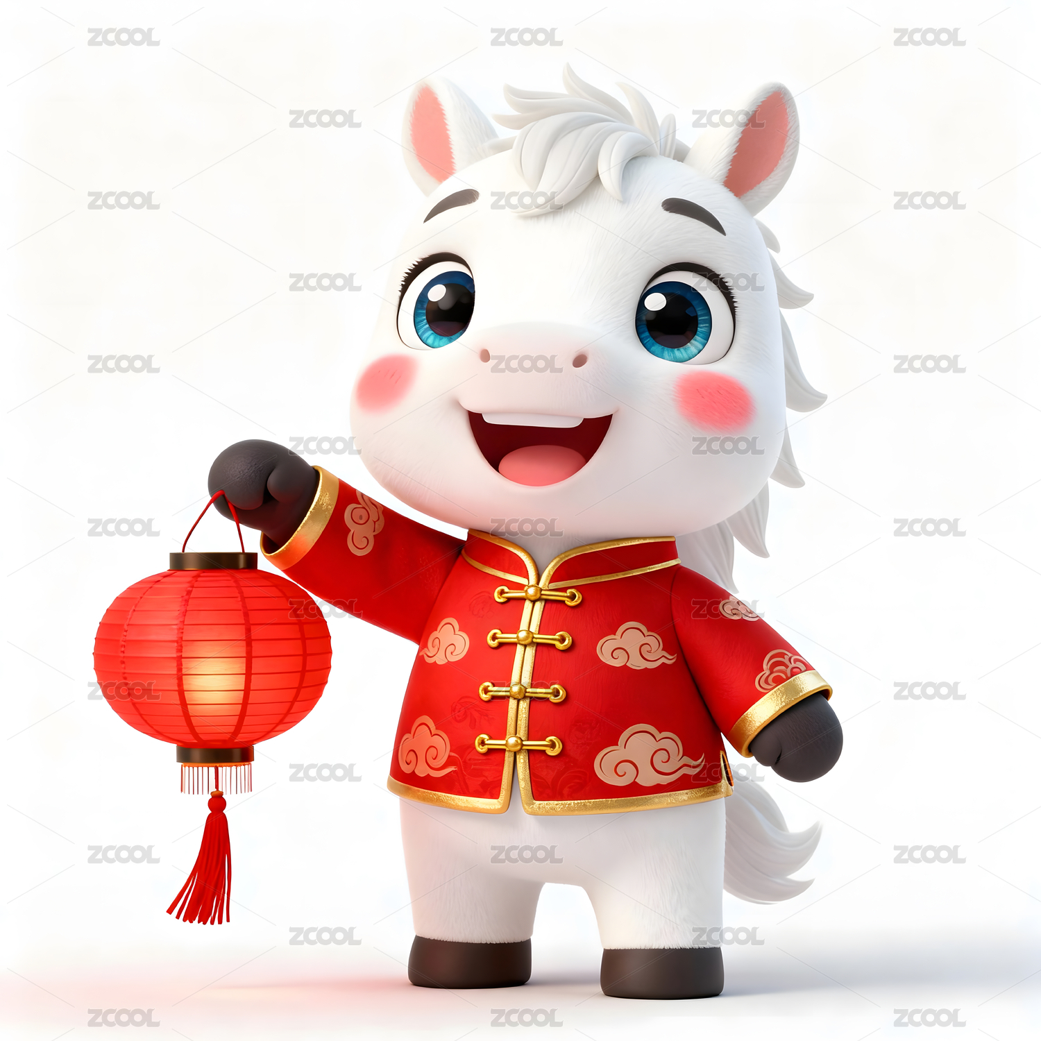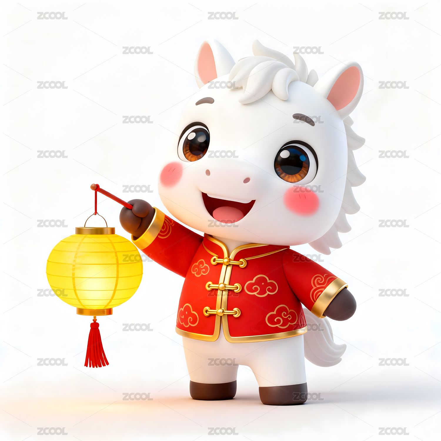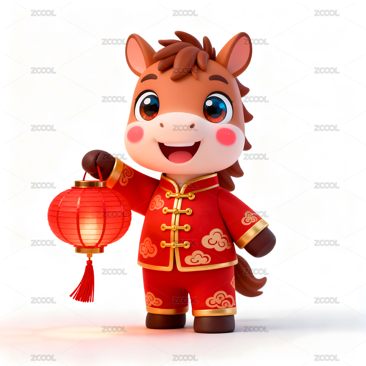 马,马年,3D,立体,卡通,形象,拟人,可爱,动画,微笑
