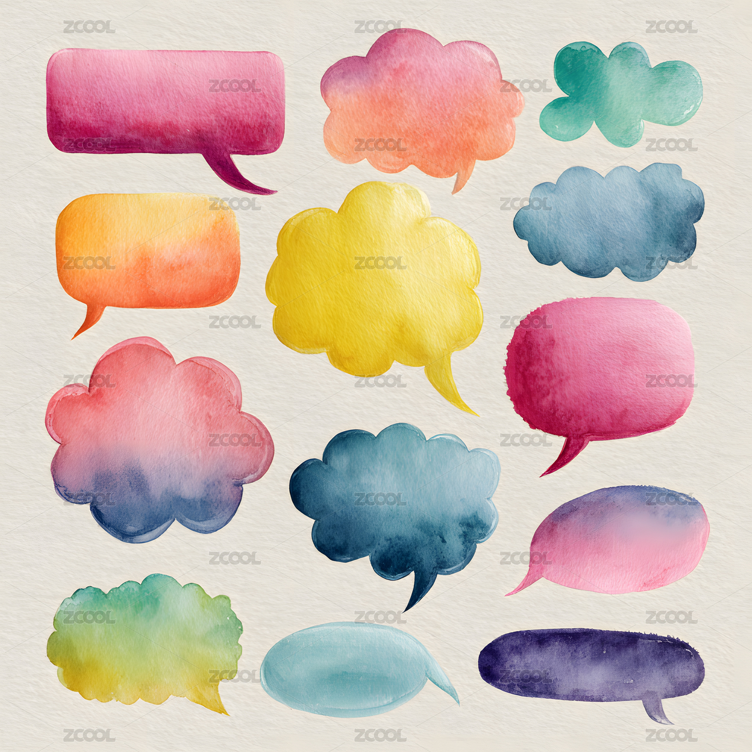 水彩风格彩色对话框气泡