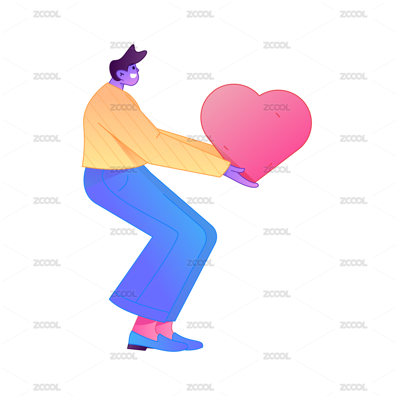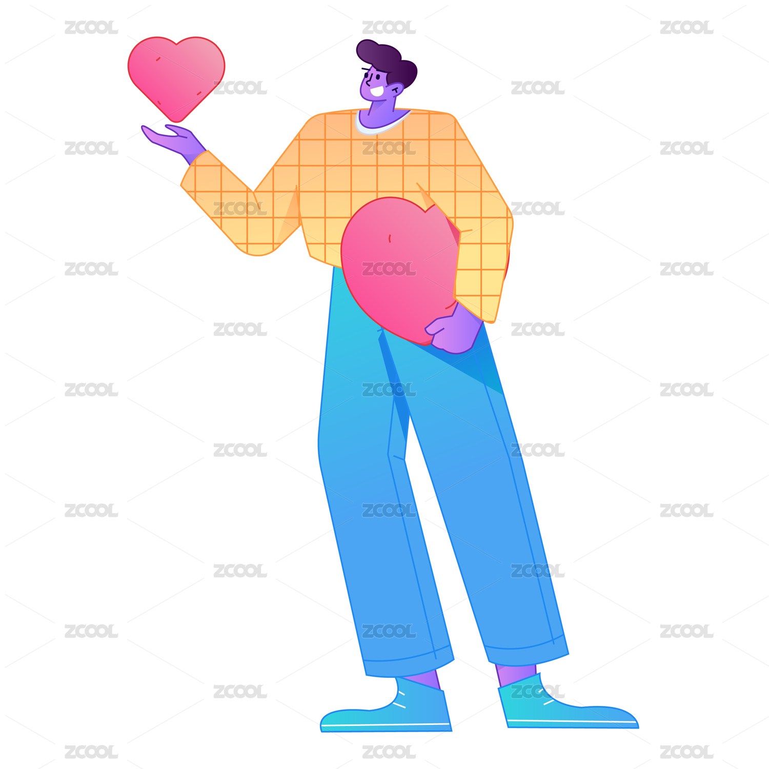 手拿爱心动作造型的人物矢量扁平渐变插画