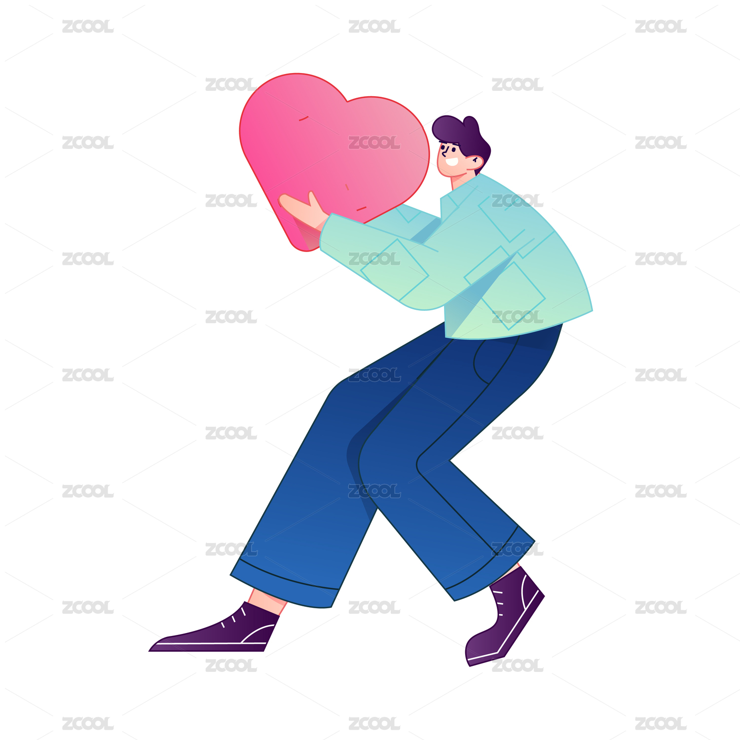 手拿爱心动作造型的人物矢量扁平渐变插画