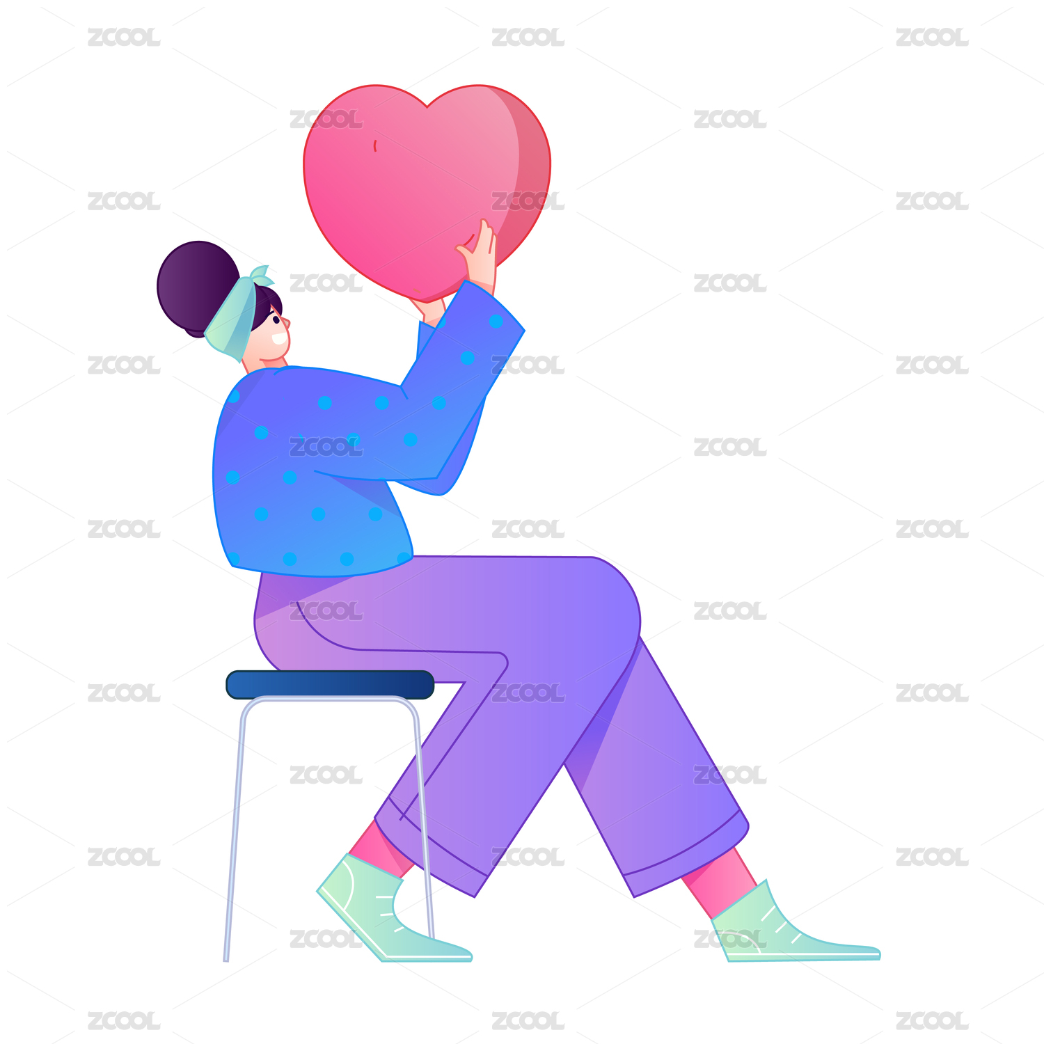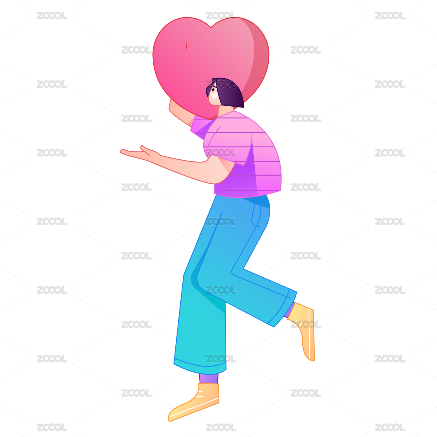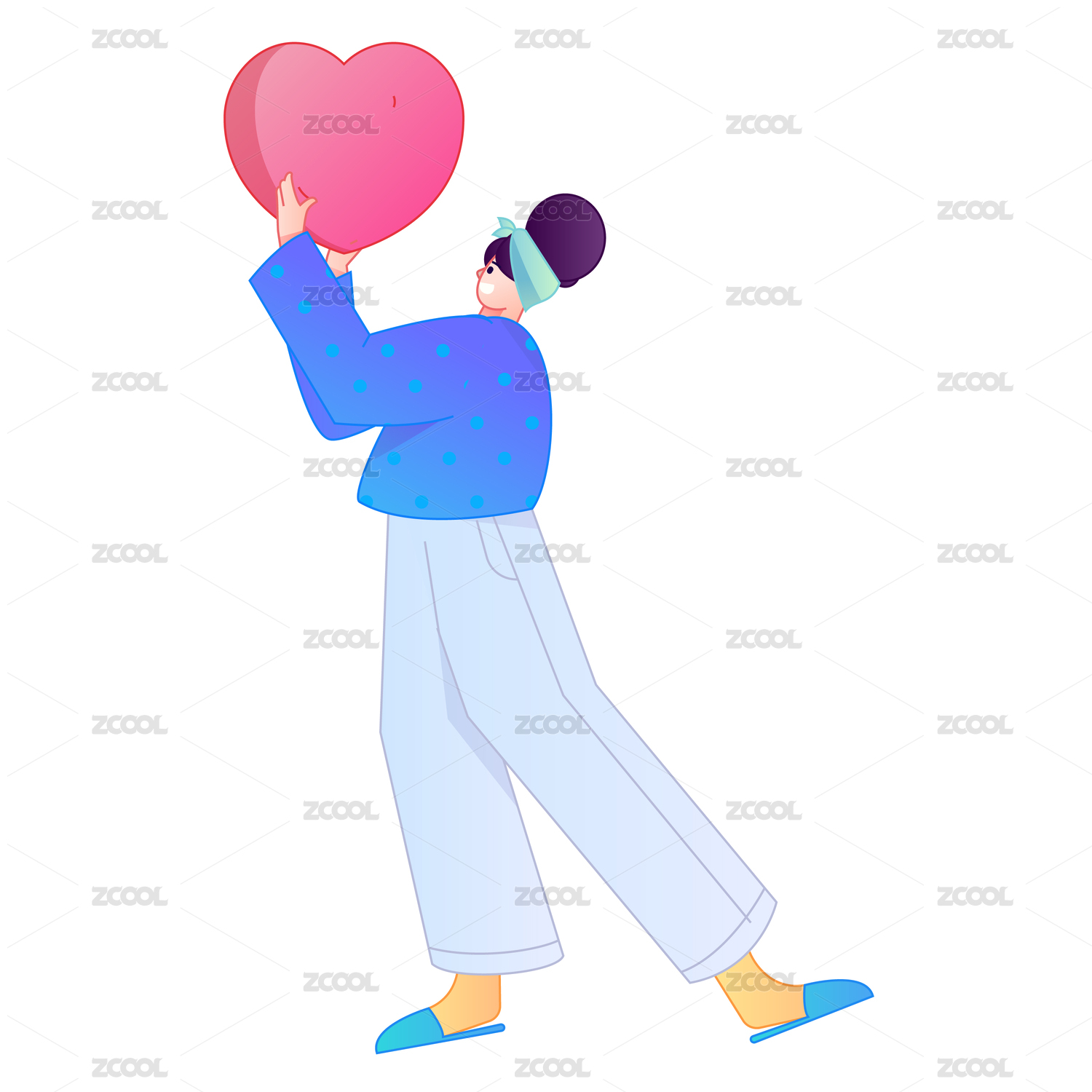 手拿爱心动作造型的人物矢量扁平渐变插画