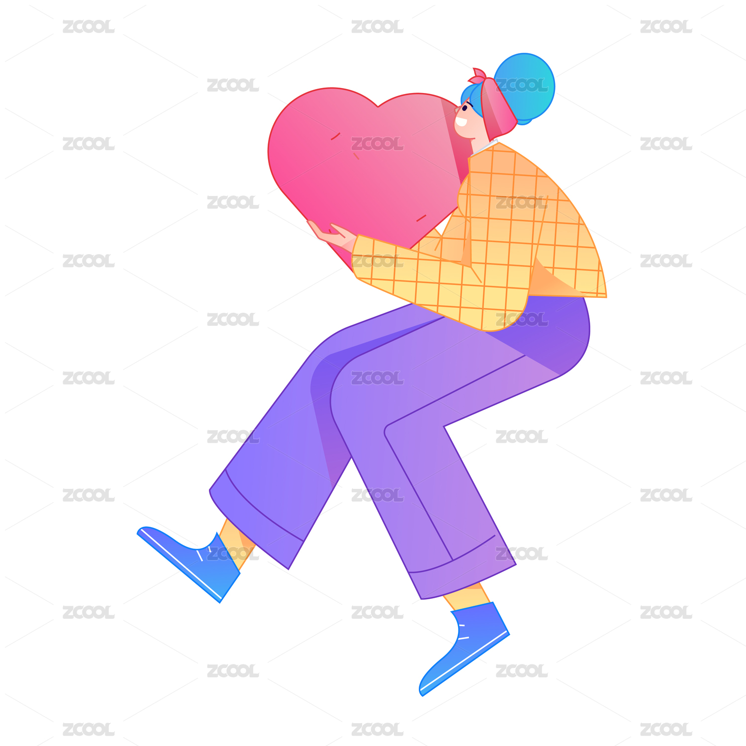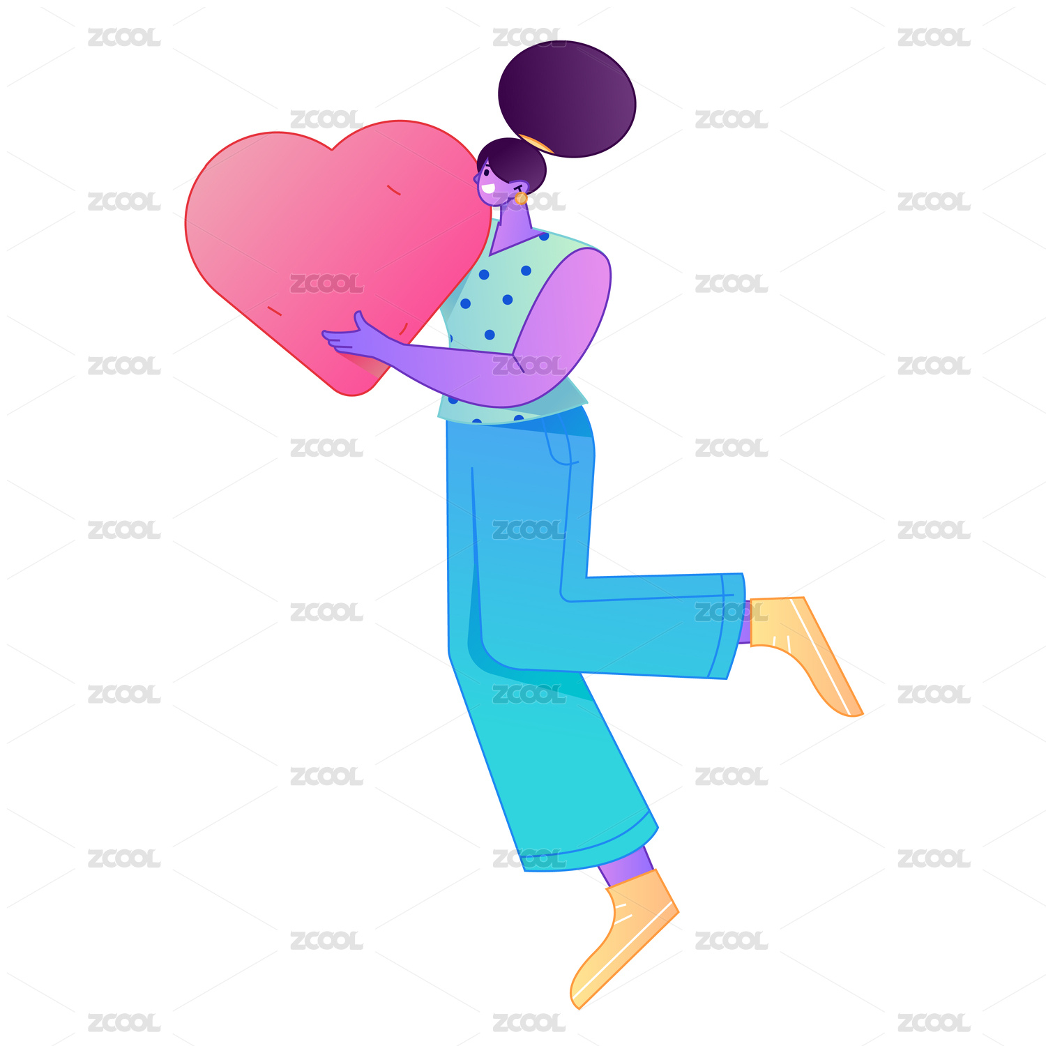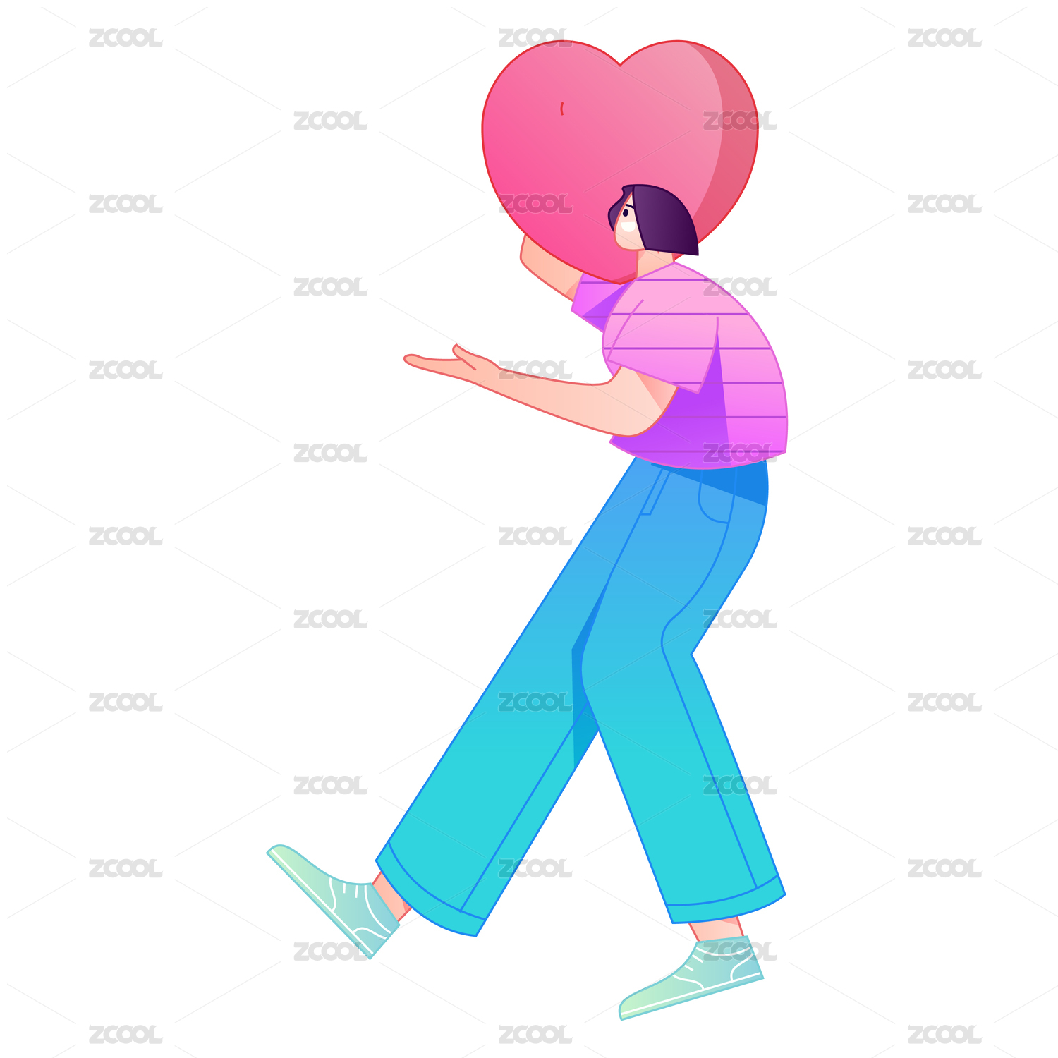 手拿爱心动作造型的人物矢量扁平渐变插画