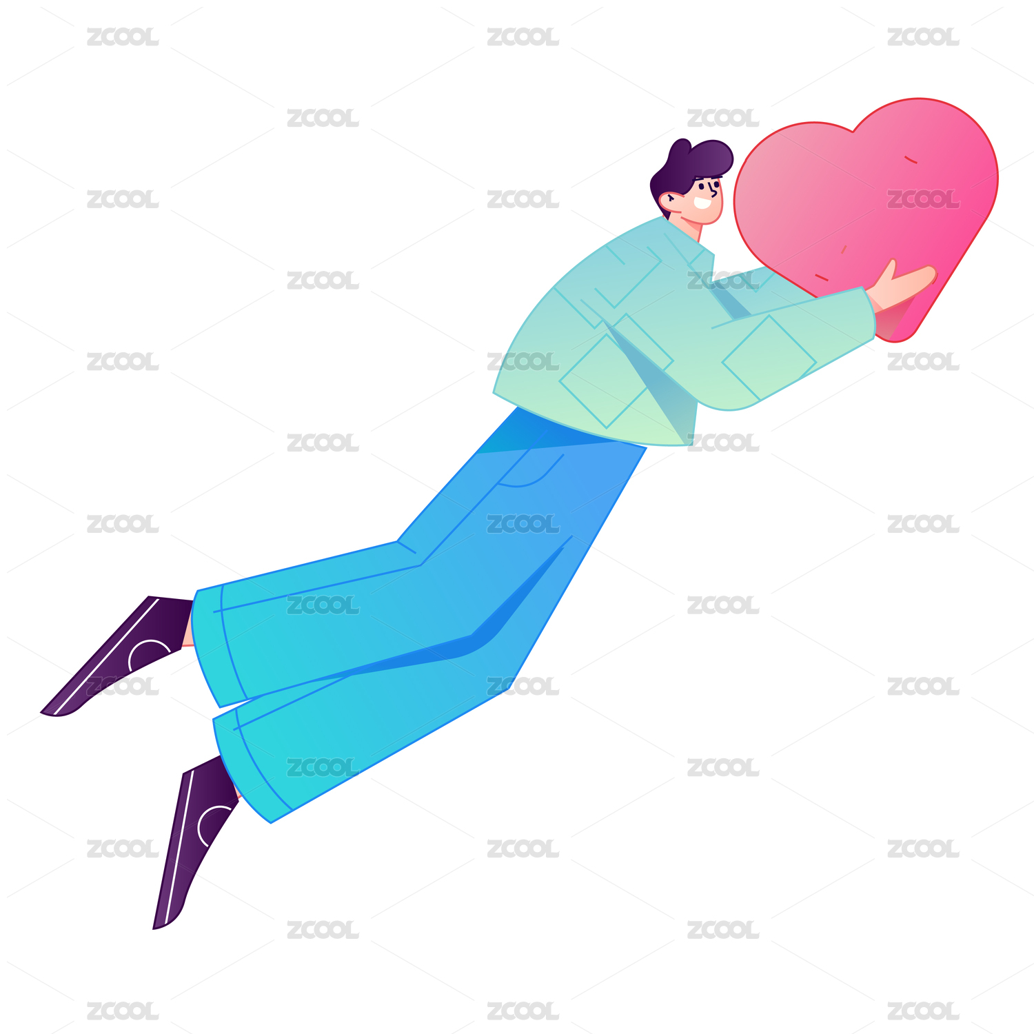 手拿爱心动作造型的人物矢量扁平渐变插画