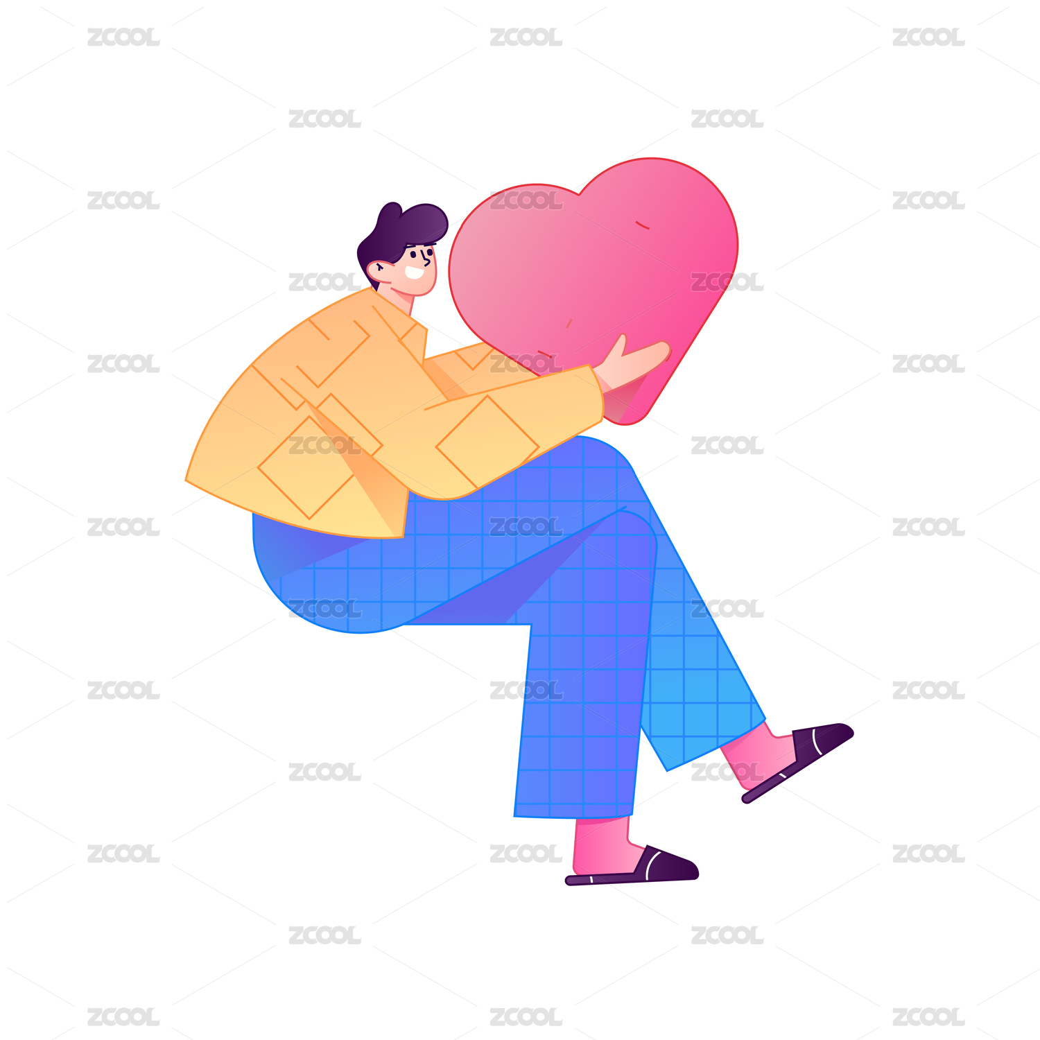 手拿爱心动作造型的人物矢量扁平渐变插画