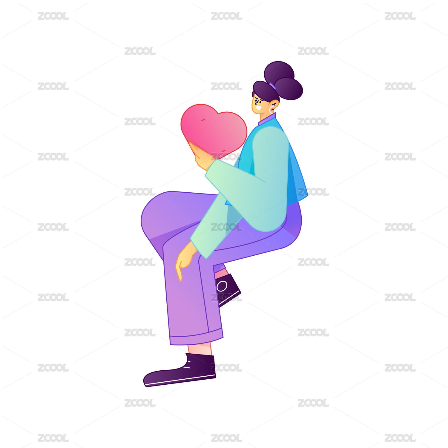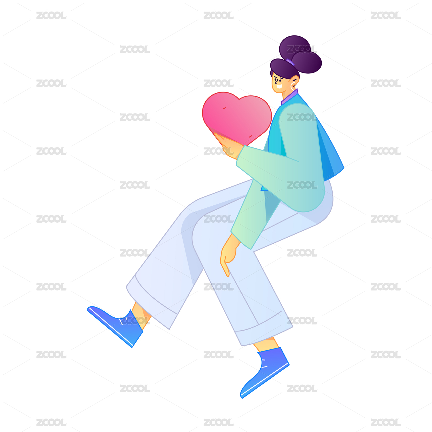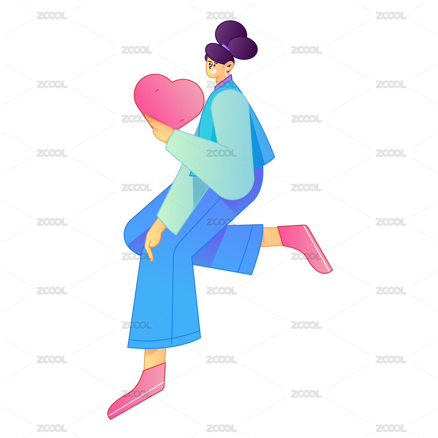 手拿爱心动作造型的人物矢量扁平渐变插画