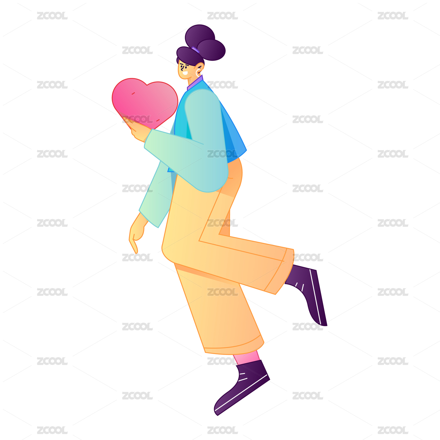手拿爱心动作造型的人物矢量扁平渐变插画