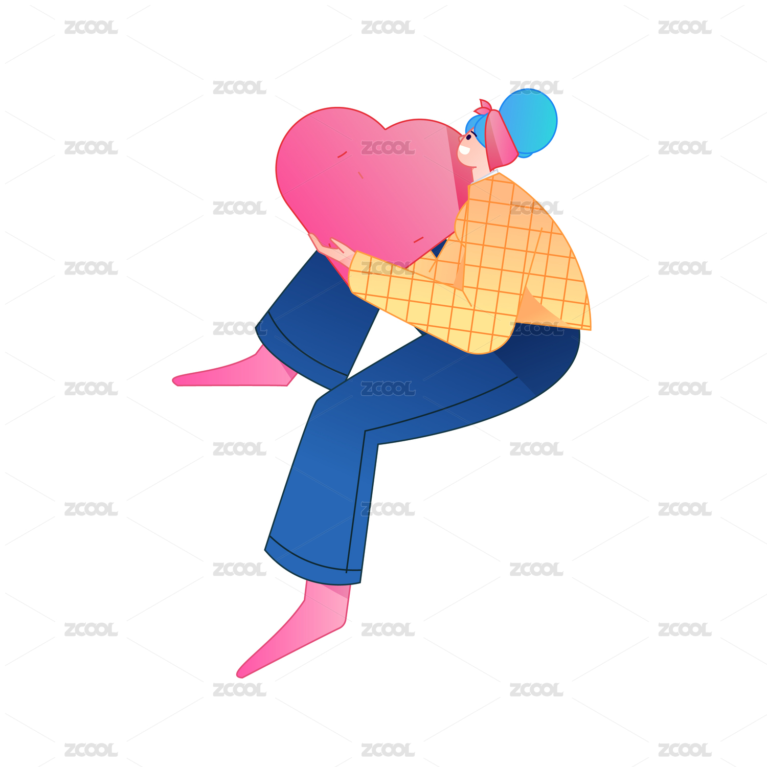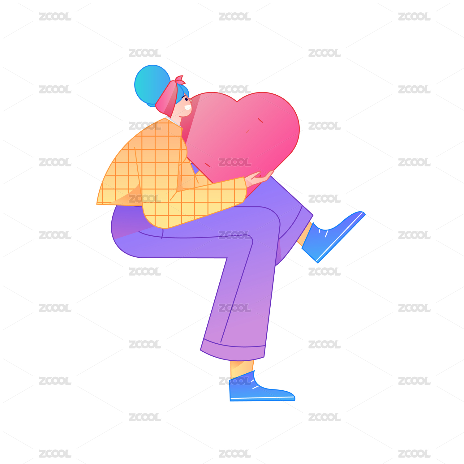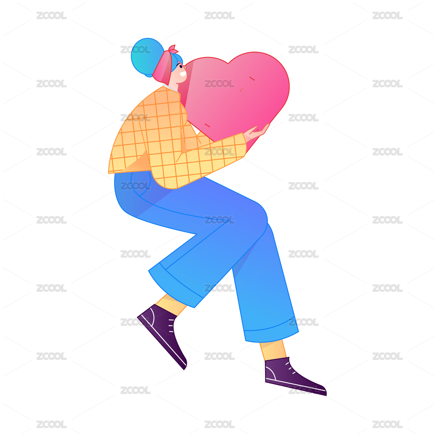 手拿爱心动作造型的人物矢量扁平渐变插画