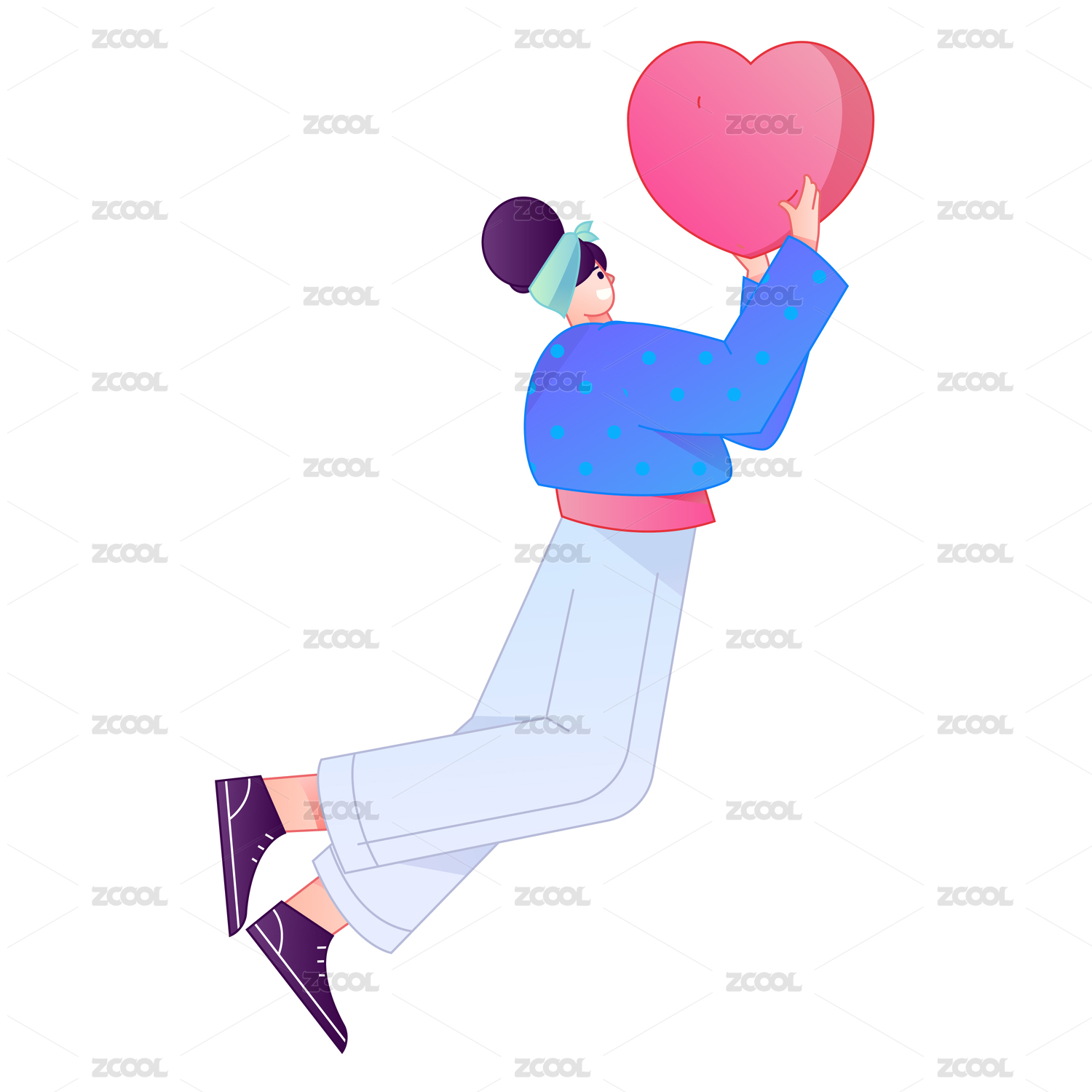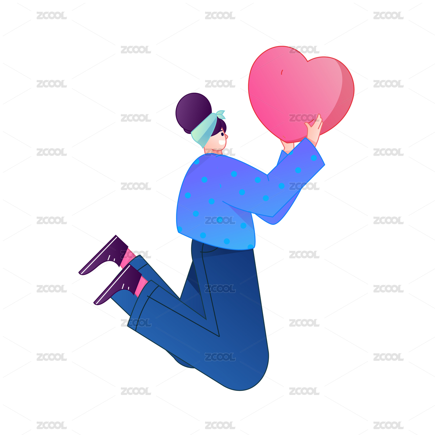 手拿爱心动作造型的人物矢量扁平渐变插画
