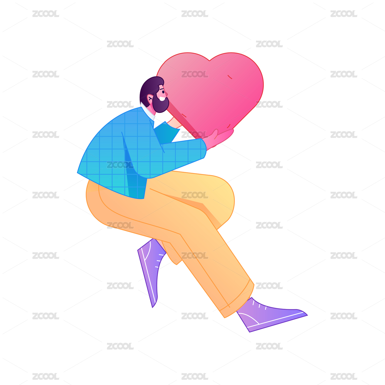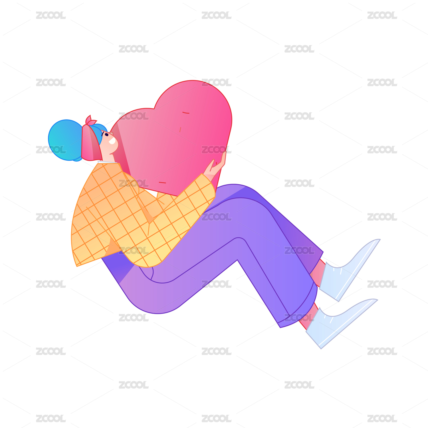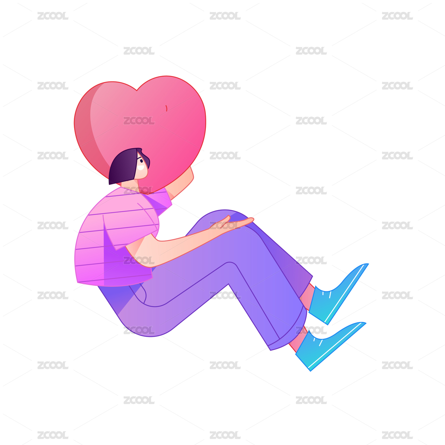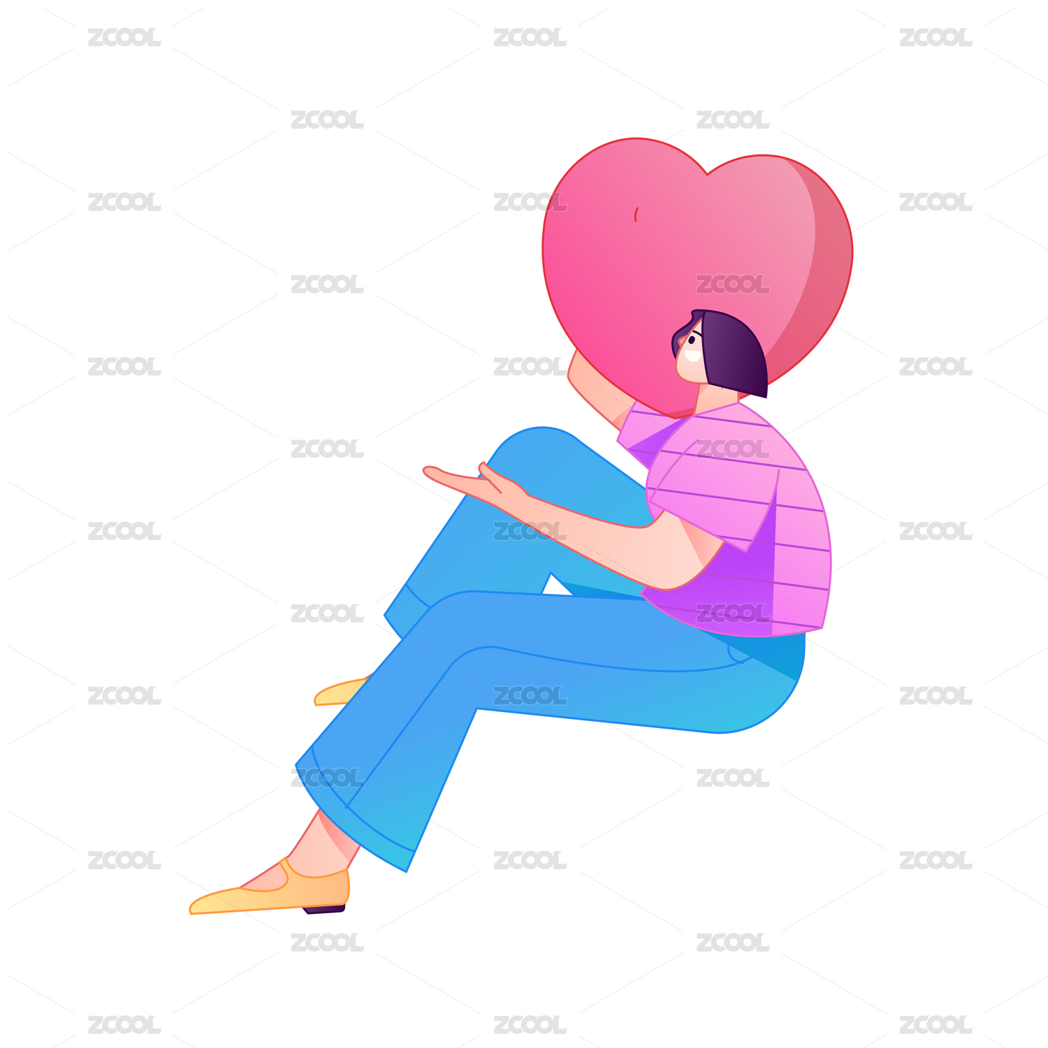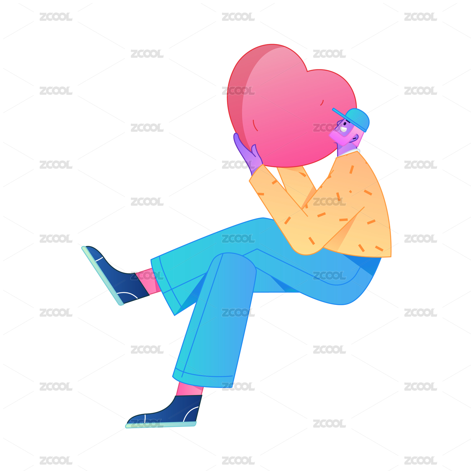 手拿爱心动作造型的人物矢量扁平渐变插画
