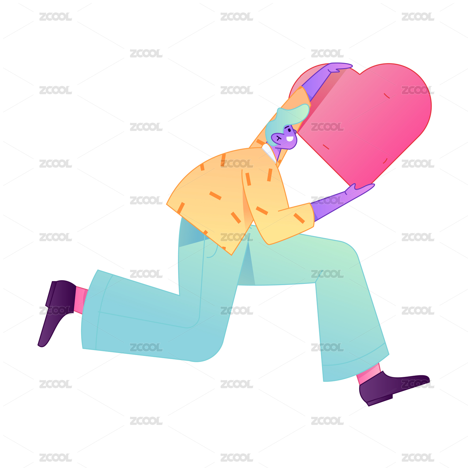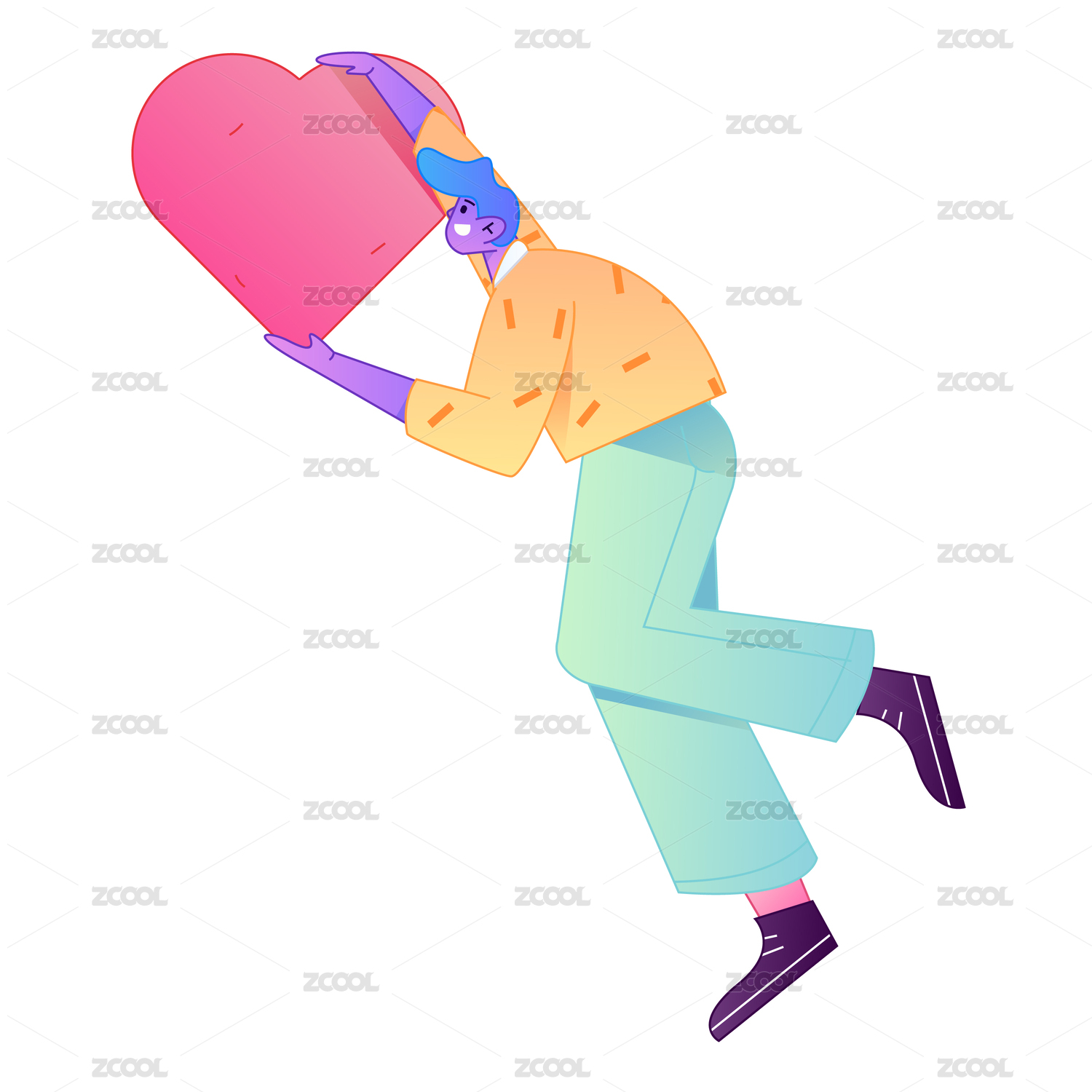 手拿爱心动作造型的人物矢量扁平渐变插画