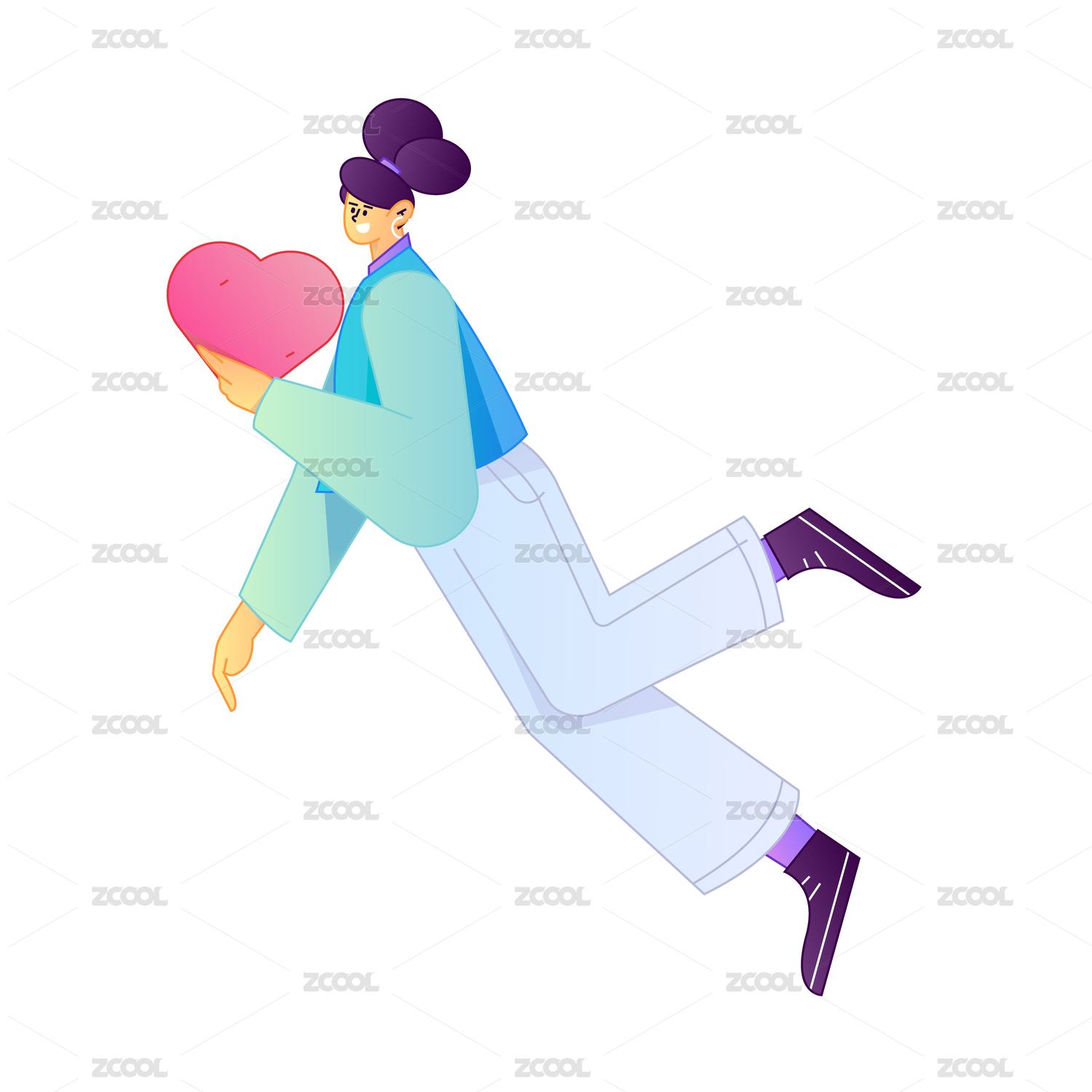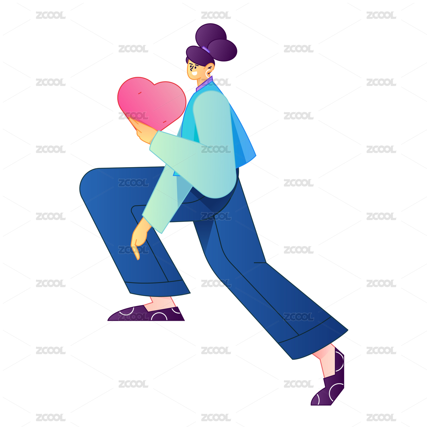 手拿爱心动作造型的人物矢量扁平渐变插画